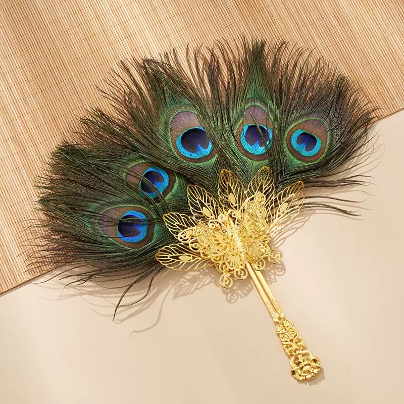 古风孔雀羽毛团扇汉服舞蹈表演掌扇道具扇百搭手持扇中国风小扇子