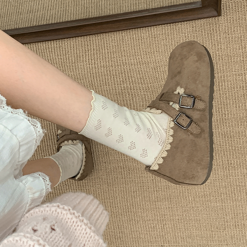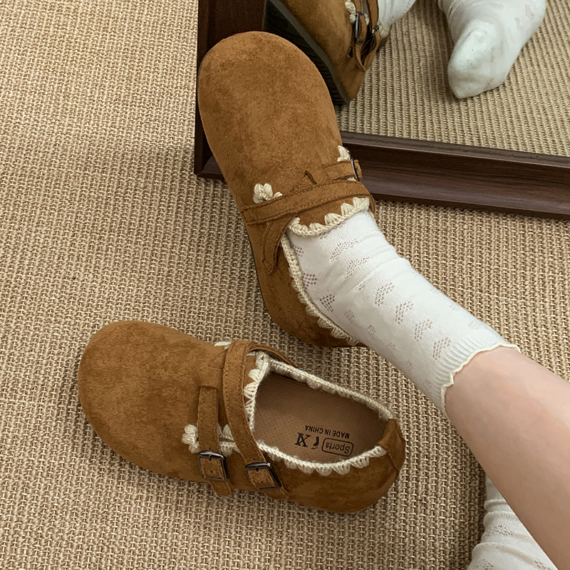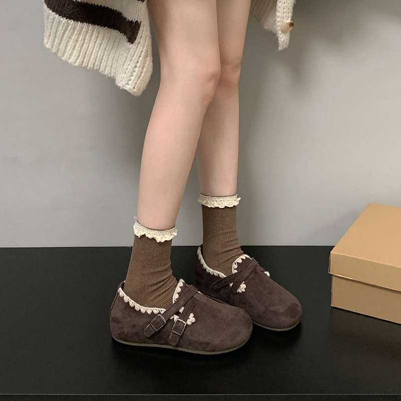 配裙子百搭单鞋 秋季 子女 女2025新款 学院风棕色复古厚底全包勃肯鞋