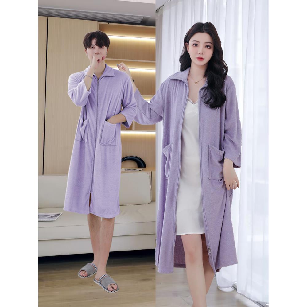 浴衣裸穿拉链睡衣女1009c 浴巾加肥加大码 秋冬男士 睡裙睡袍浴袍式