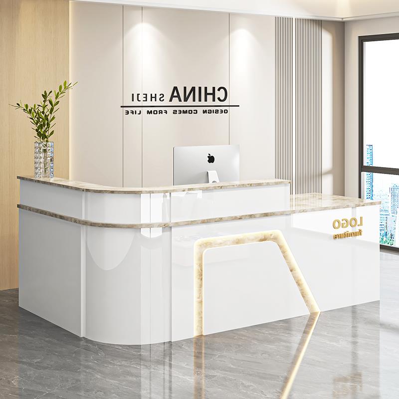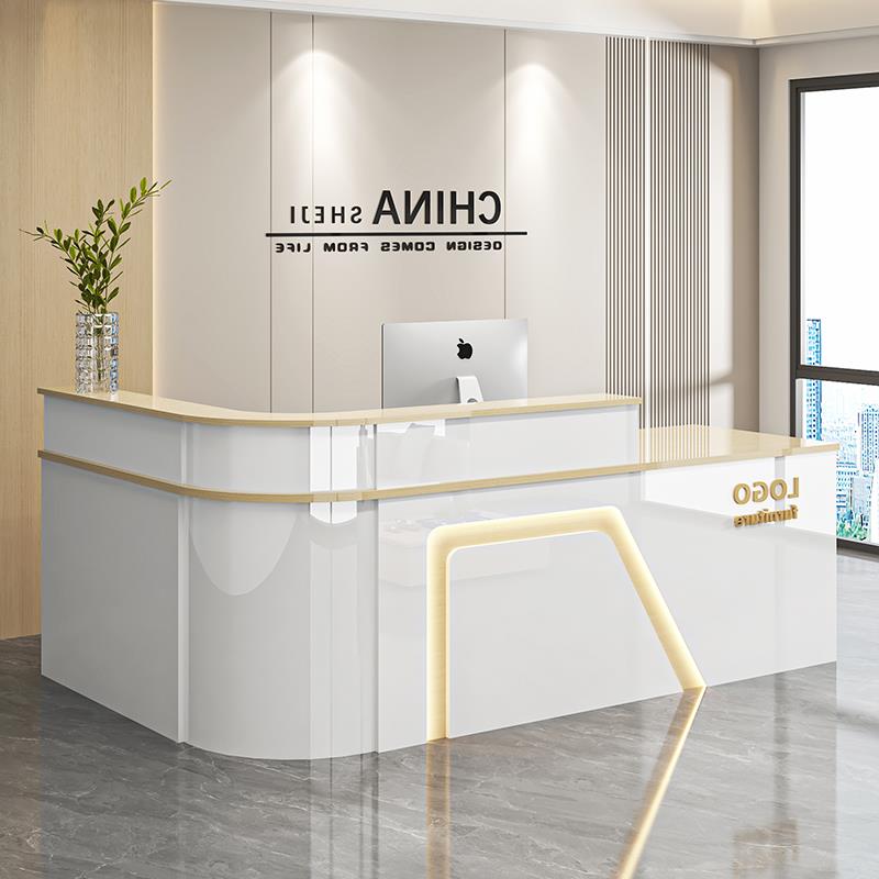 接待台前台收银台烤漆亮光弧形转角吧台商场超市餐厅服装 酒店吧台
