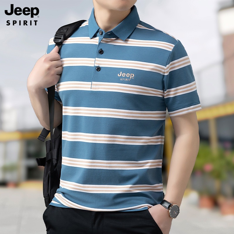 SPIRIT吉普短袖 翻领条纹休闲商务t恤衫 T恤男夏季 半袖 polo衫 JEEP