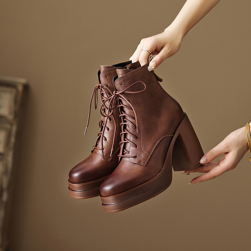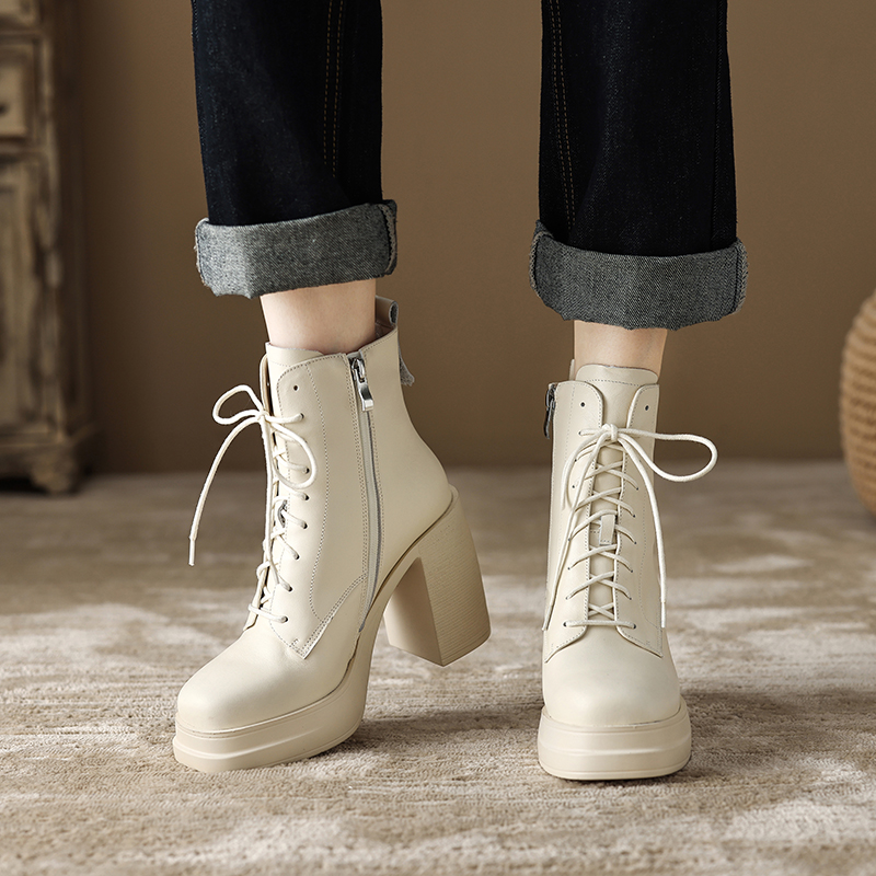 百搭轻便短靴休闲加绒保暖靴子 10cm超高跟马丁靴女时尚 秋冬季 新款