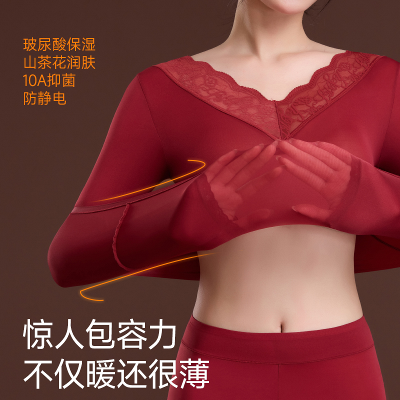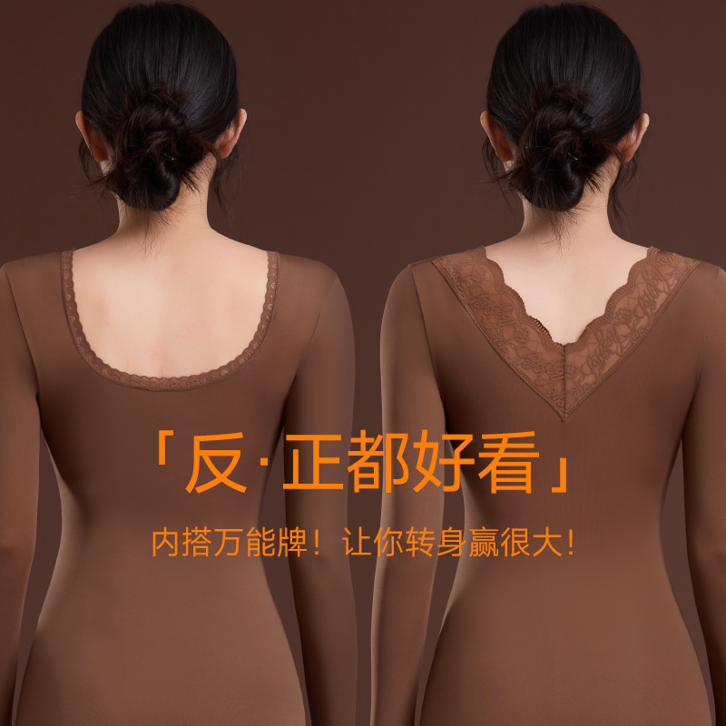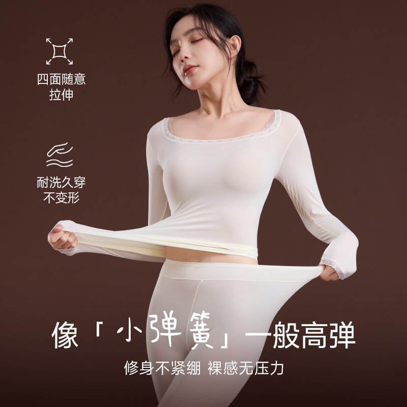 德绒发热加绒保暖内衣羊绒蚕丝美肤衣 女2025新款 猫人秋衣秋裤 套装