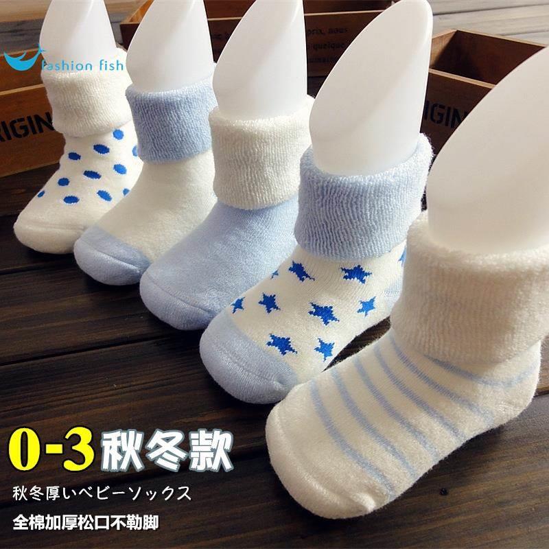 新生婴儿儿袜子秋冬纯棉加厚初生宝宝胎袜可爱春秋中筒袜1岁0 3月