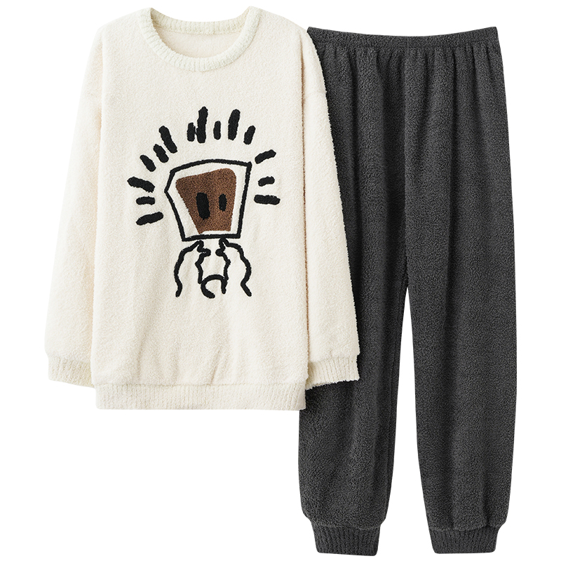 珊瑚绒加绒加厚可外穿家居服 半边绒睡衣秋冬新款 都市丽人男士 长袖