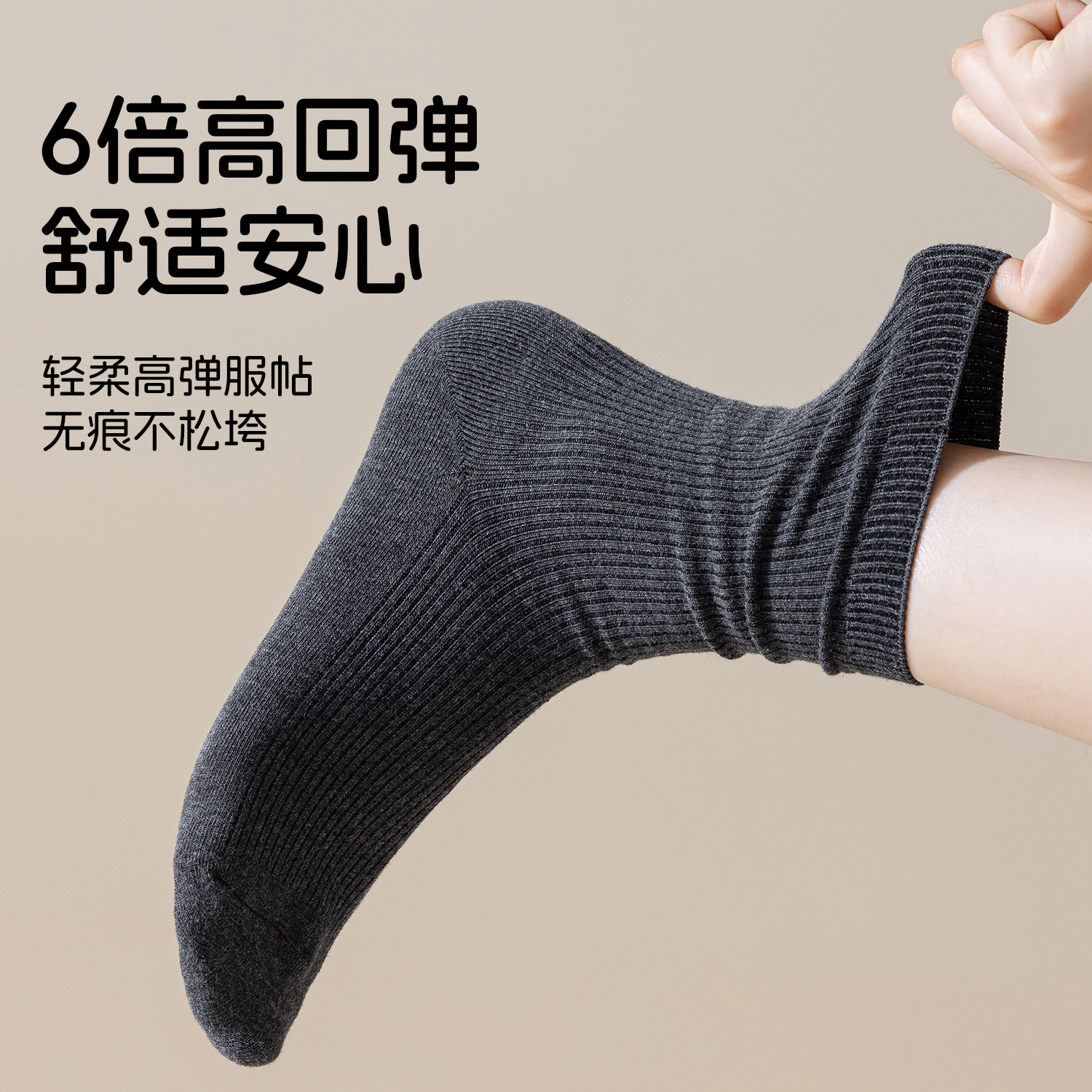 棉伙棉伴海藻袜舒适抗菌防臭男女商务运动纯色裸感中筒袜