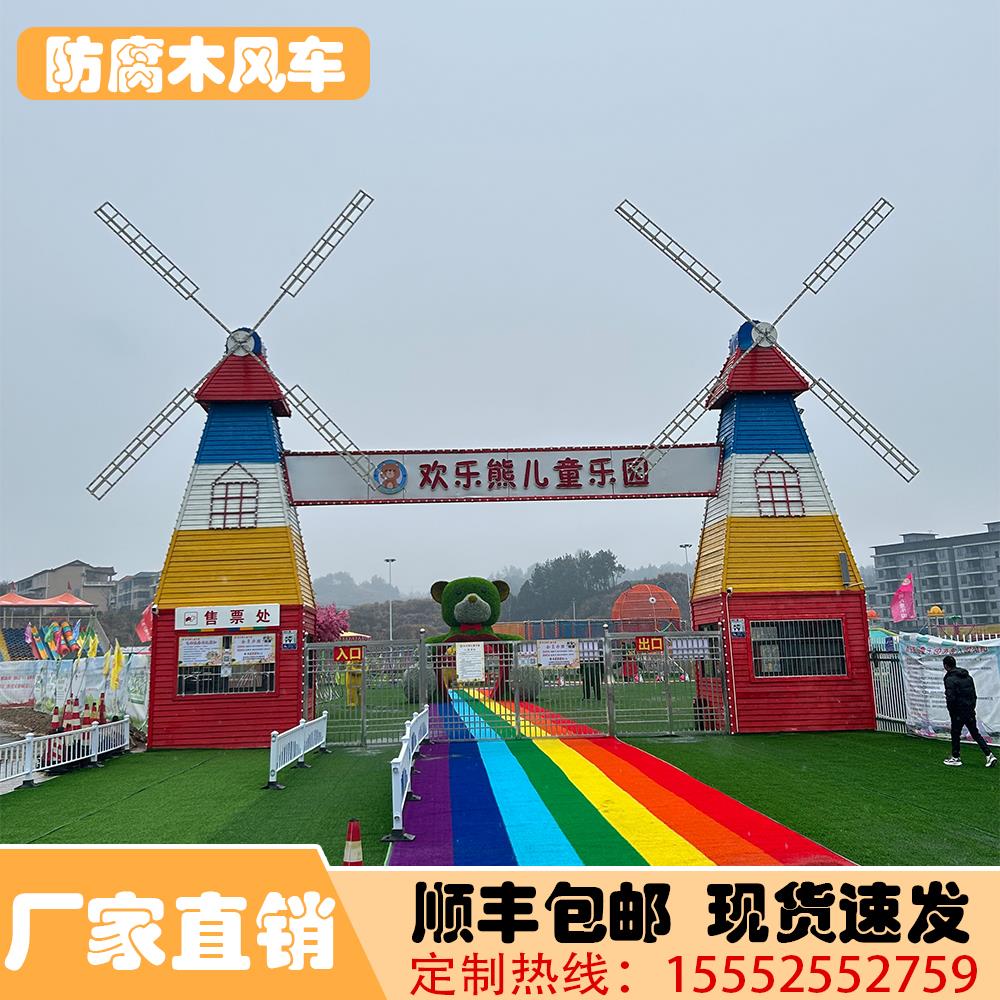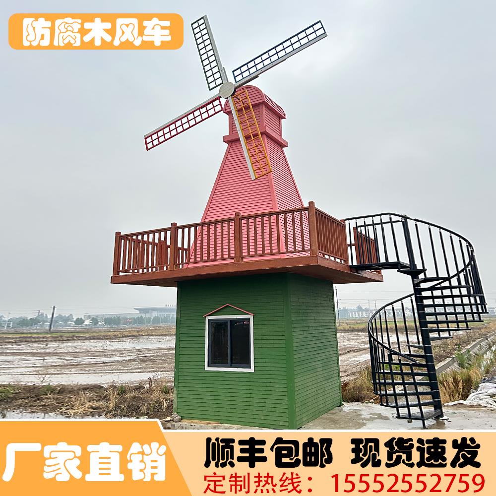 厂家直销防腐木风车 美丽乡村风车 荷兰风车田园风车大型景观风车