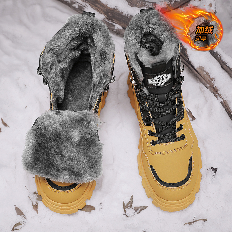 户外登山防水防滑抗寒劳保工装 加绒保暖棉鞋 马丁靴 冬季 雪地靴男款