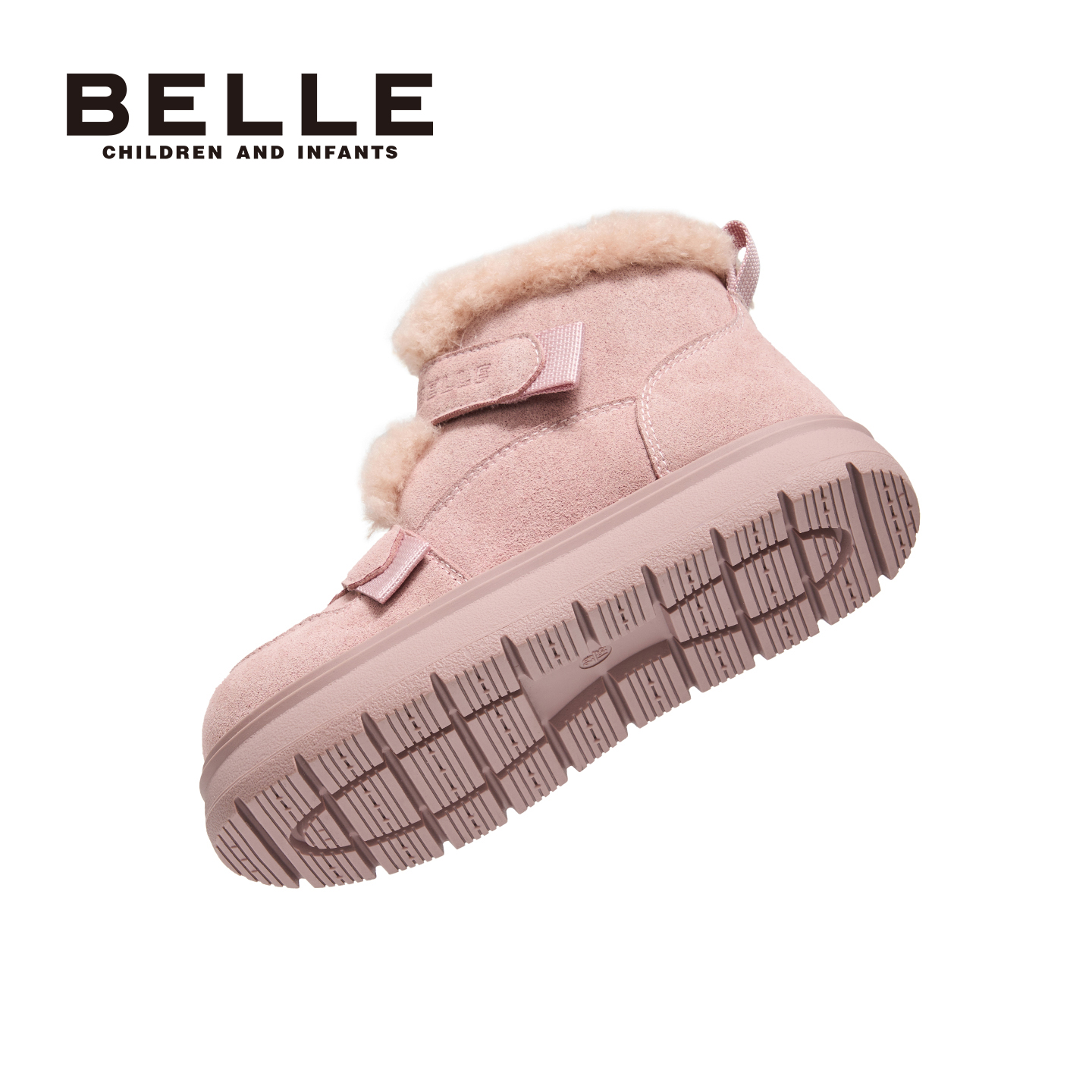 粉色公主洋气加绒保暖儿童棉鞋 百丽童鞋 女童雪地靴宝宝毛毛靴冬季