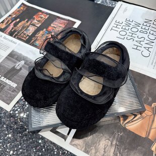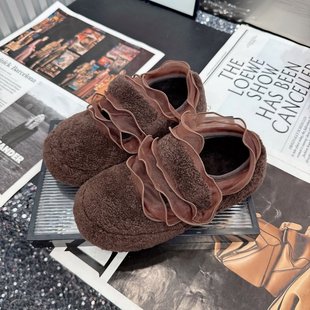 一字拖毛毛鞋 加绒加厚东北大棉鞋 子棉拖 新款 厚底雪地靴女2025冬季