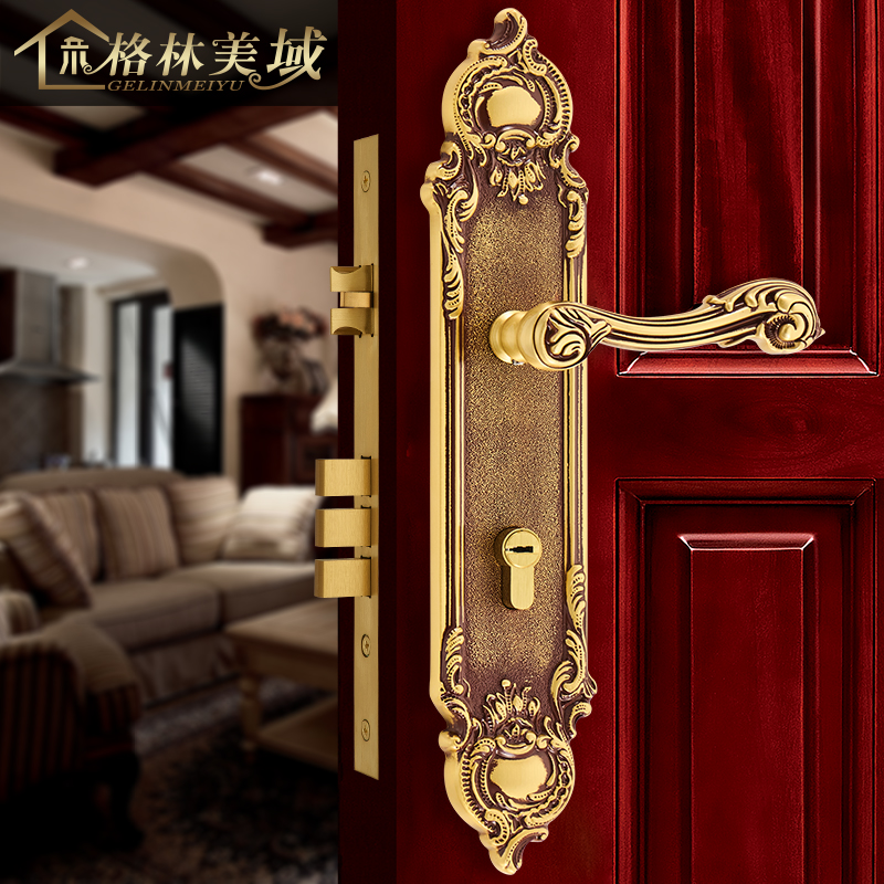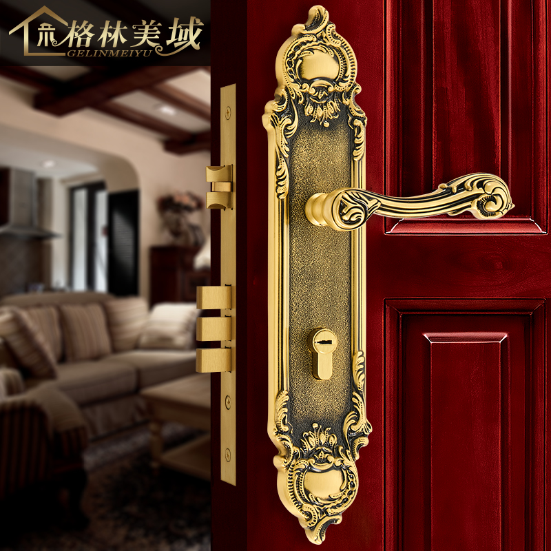 格林美域入户大门全铜门锁欧式 双开对开门锁金色子母单开木门锁