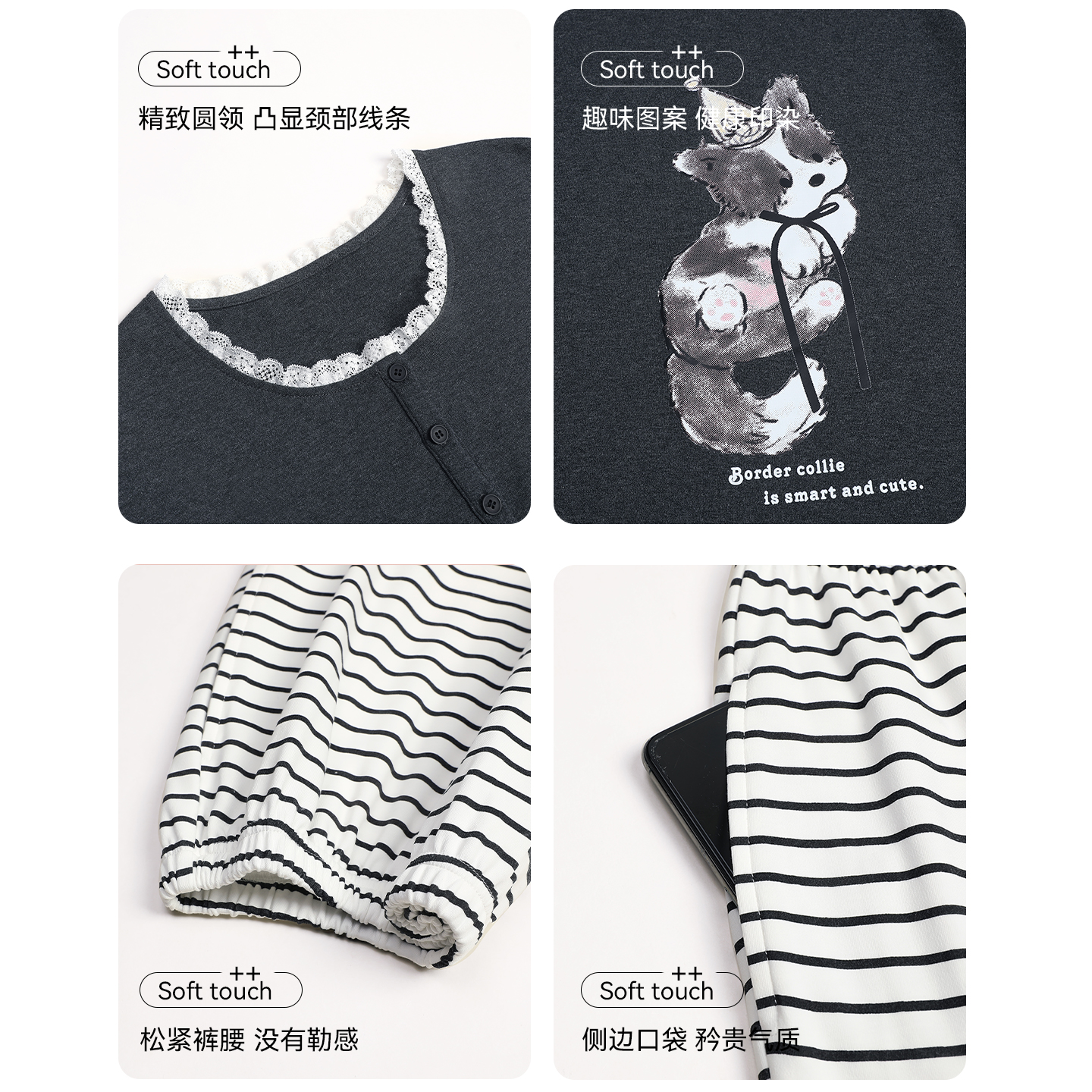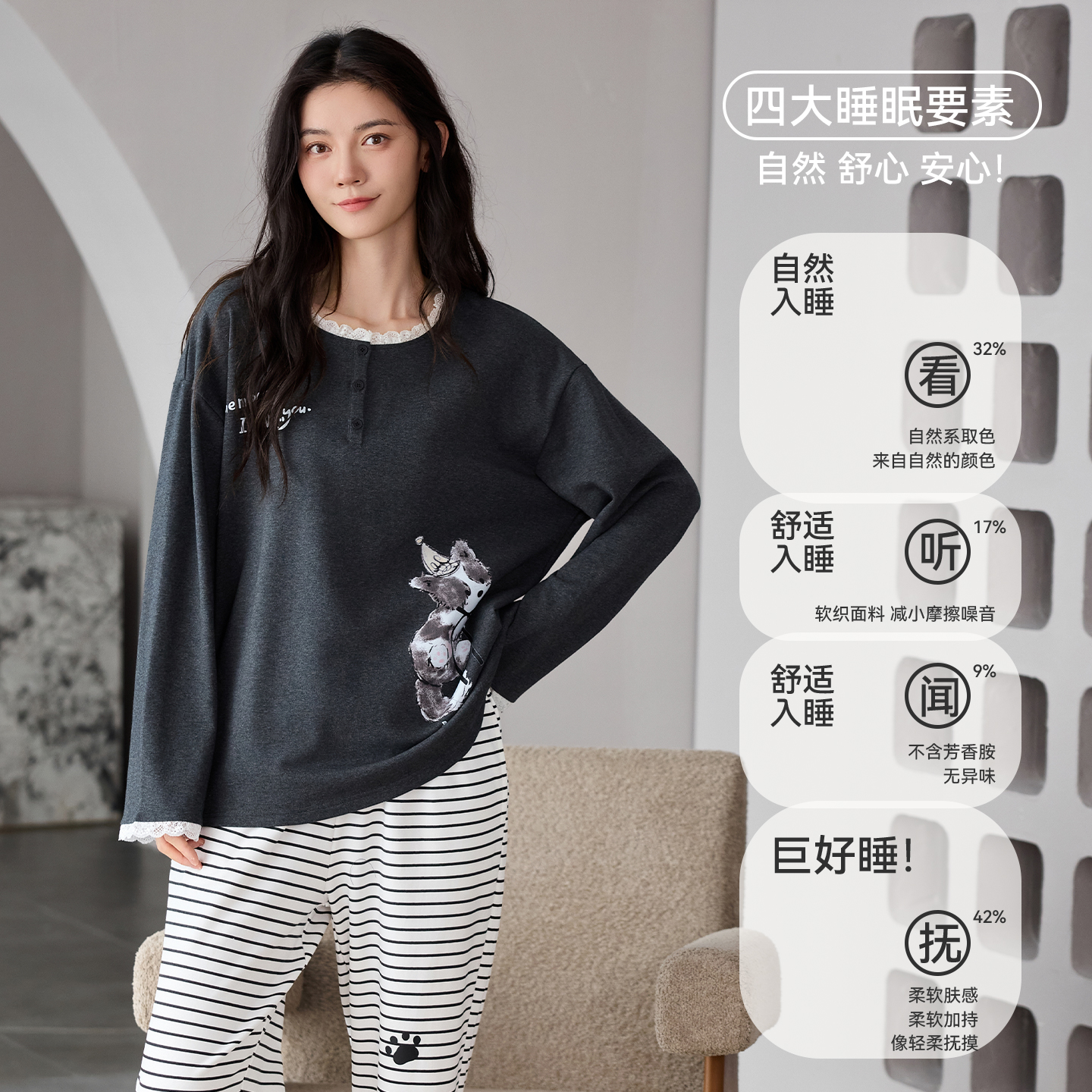 长裤 长袖 2025秋季 新款 猫人纯棉女款 甜美宽松家居服套装 睡衣春秋季