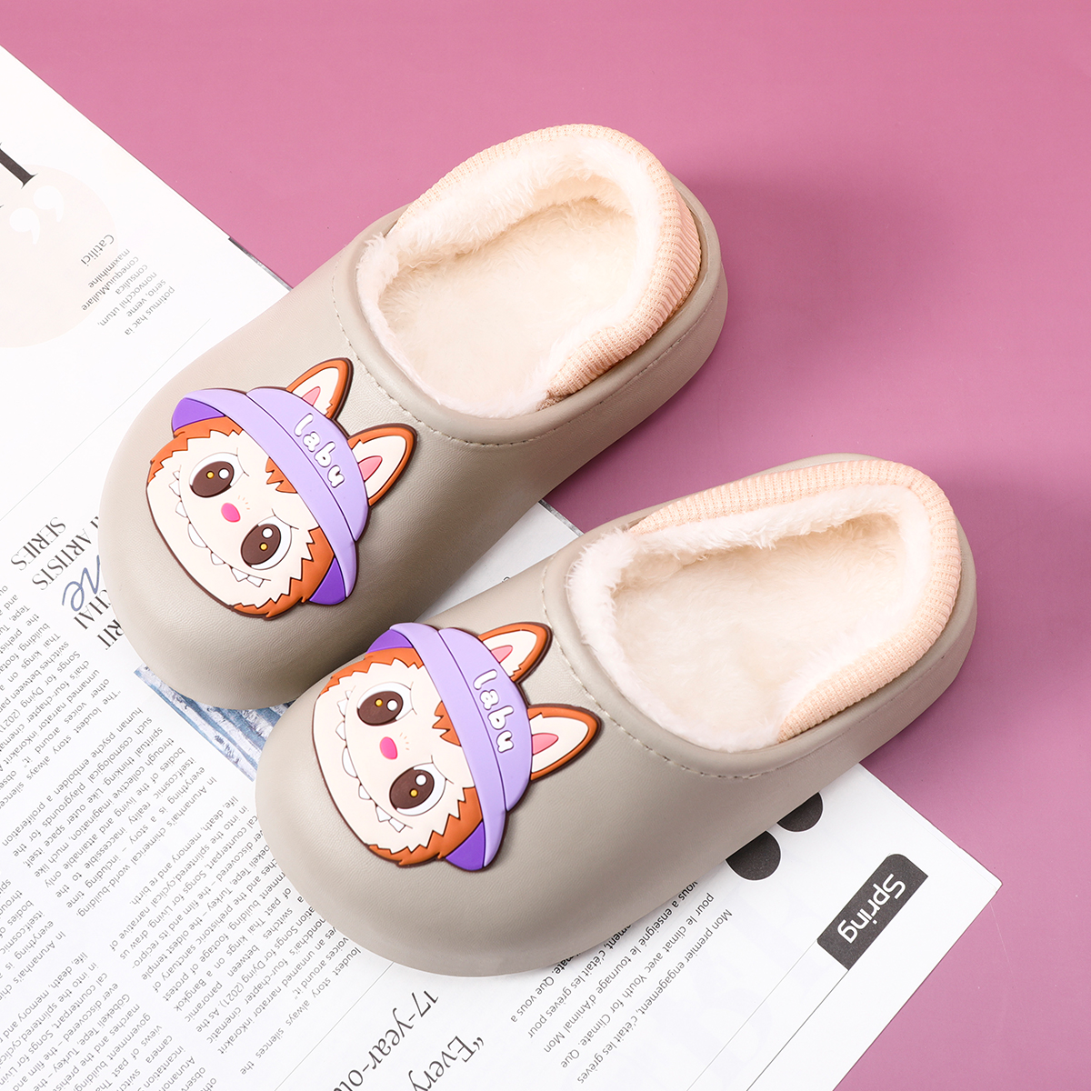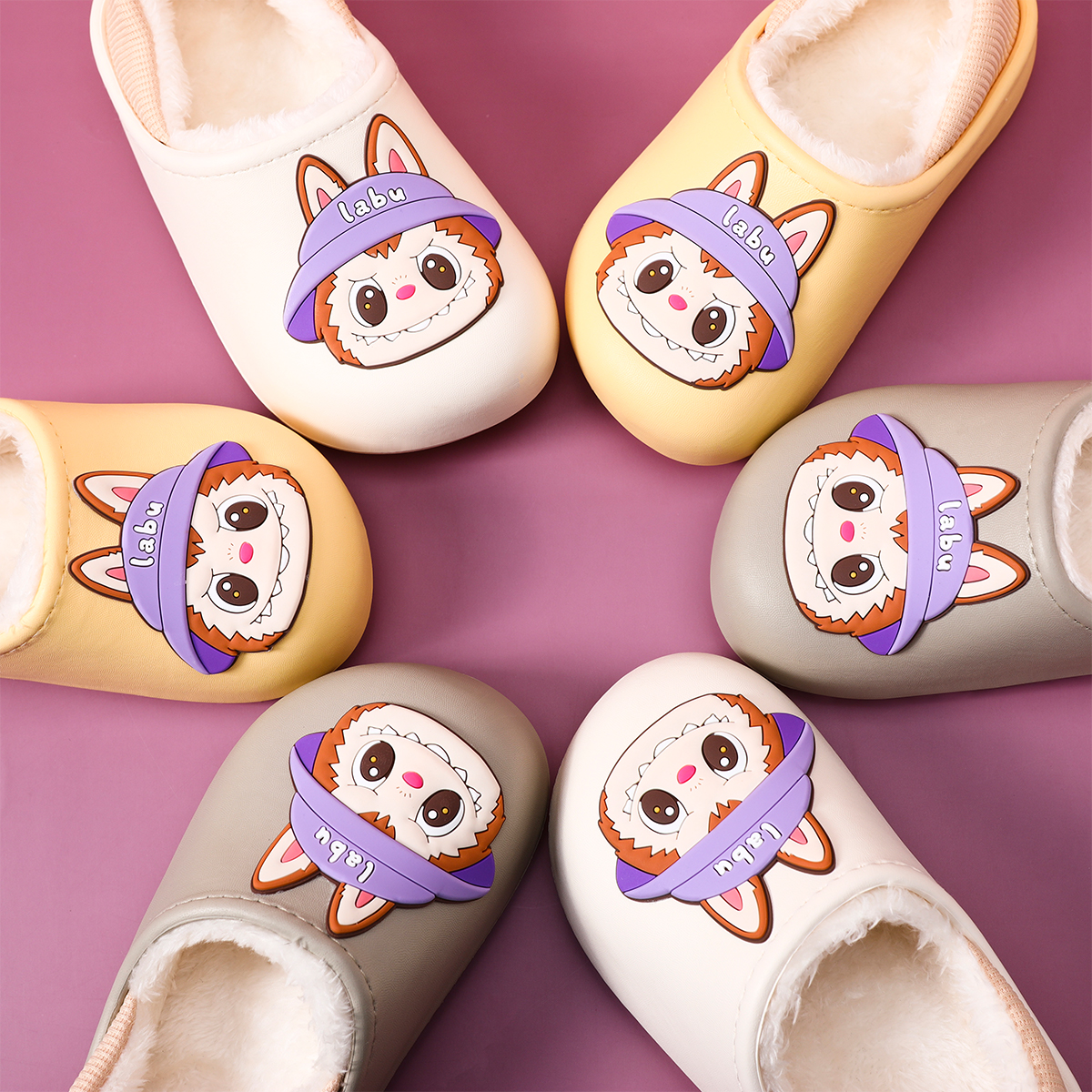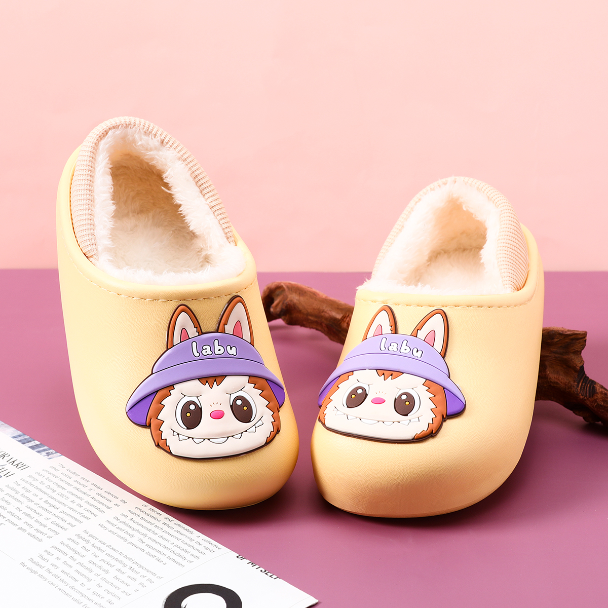 男童室内家居防滑软底女孩宝宝棉拖鞋 秋冬新款 拉布布加绒儿童棉鞋