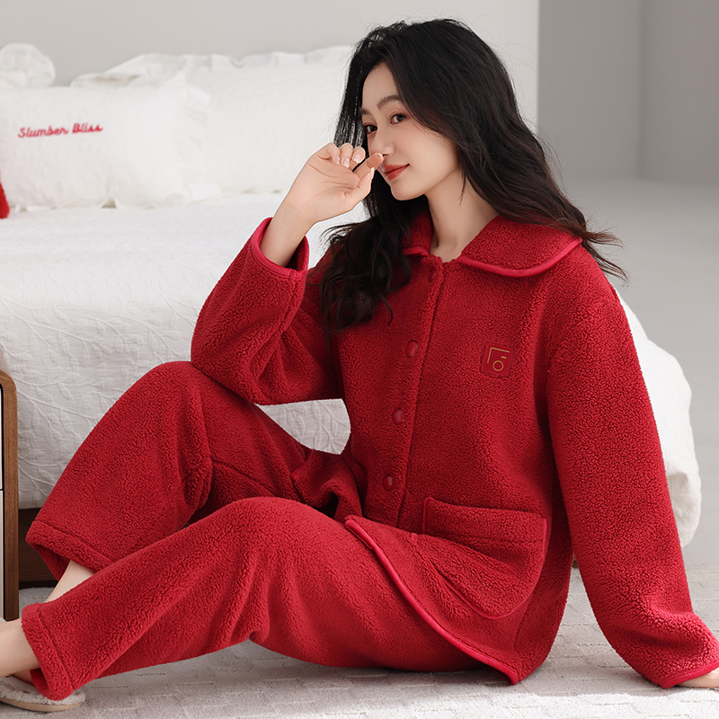 家居服 保暖珊瑚绒加绒加厚高档大码 2025年新款 羊羔绒睡衣女冬季