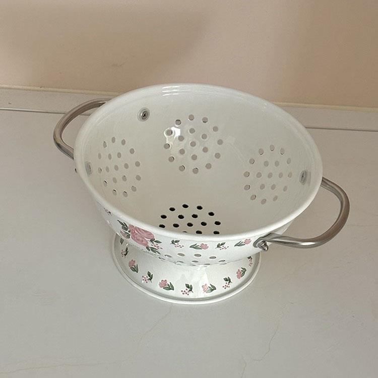复古搪瓷水果篮沥水篮沥水盆置物篮 ins法式 老麦 自制