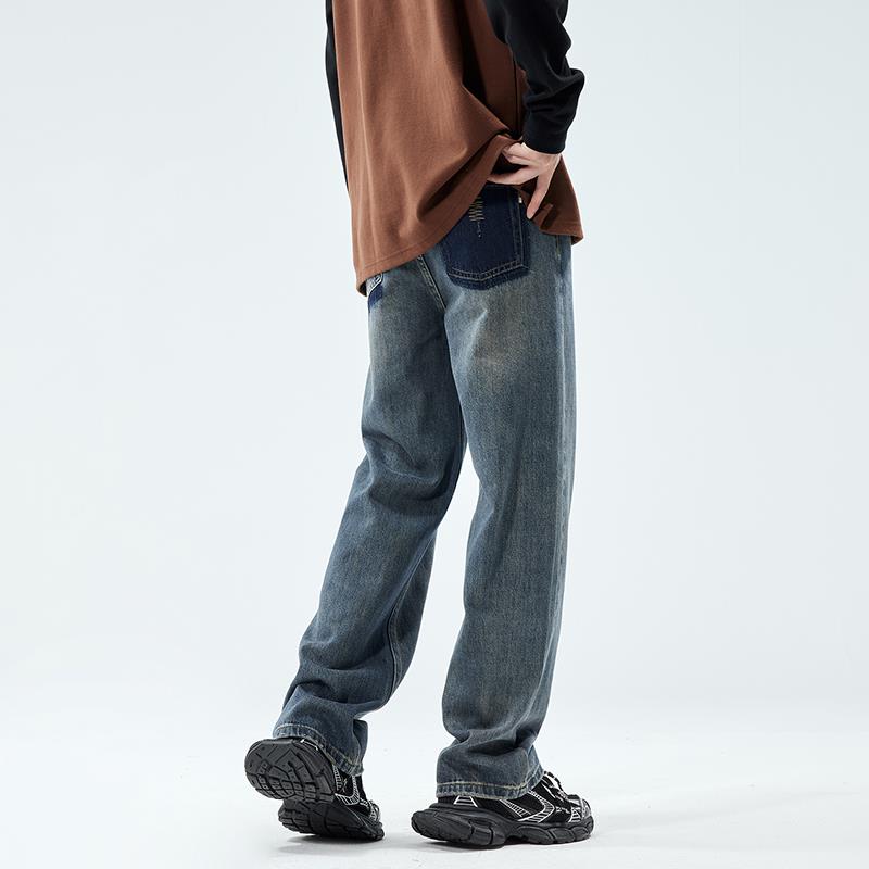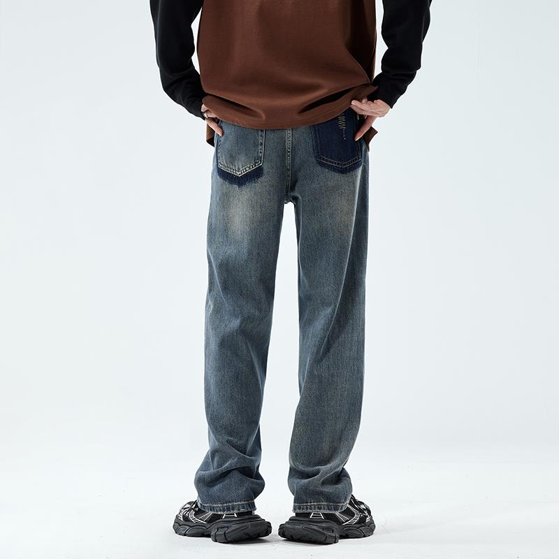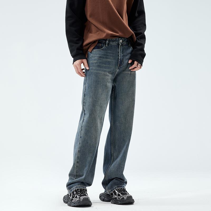 新款 男2024冬季 长裤 复古做旧宽松直筒裤 森柔牛仔 时尚 森马牛仔裤
