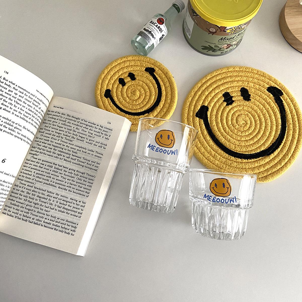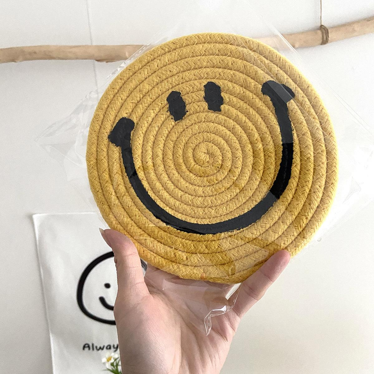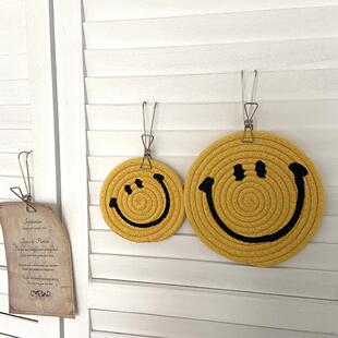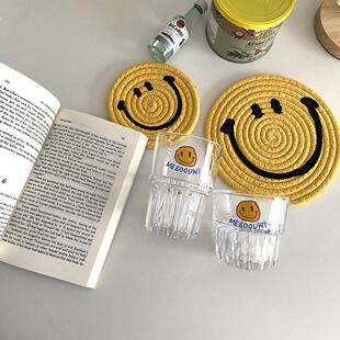 ins黄色笑脸杯垫可爱家用防烫隔热垫餐垫垫子桌面摆件拍照道具