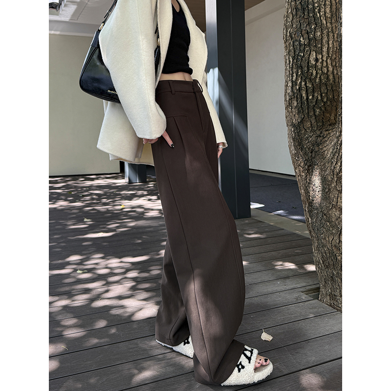 直筒裤 米白色阔腿裤 西装 加厚垂感显瘦窄版 女秋冬高级感拖地休闲裤