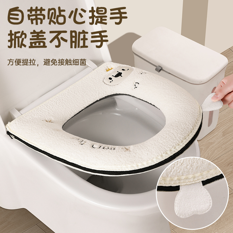 马桶坐垫四季 垫子2025厕所坐便器拉链毛绒加厚马桶圈 通用冬季