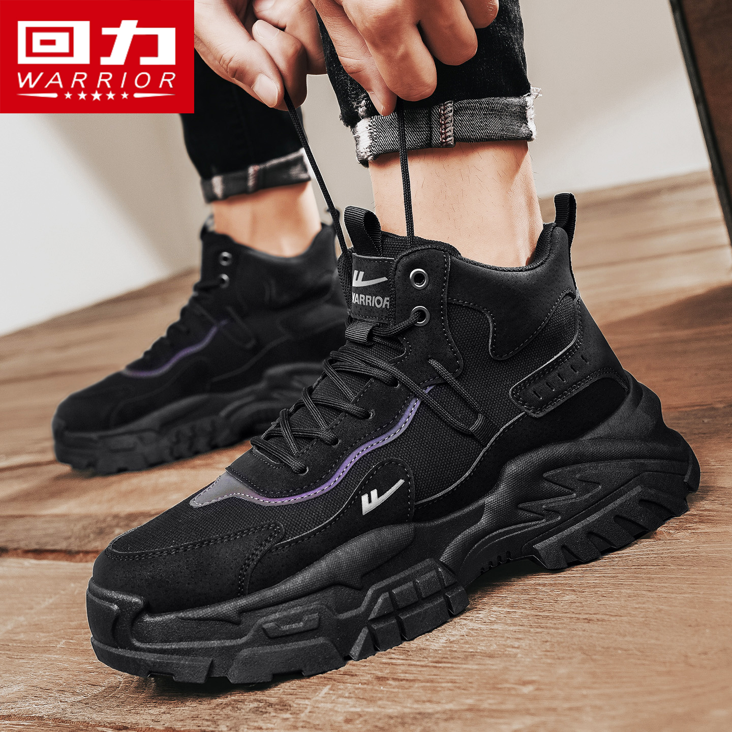 靴 户外登山运动工地工作干活耐磨劳保工装 回力黑色马丁靴男鞋 秋季