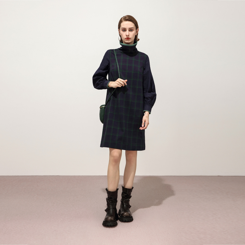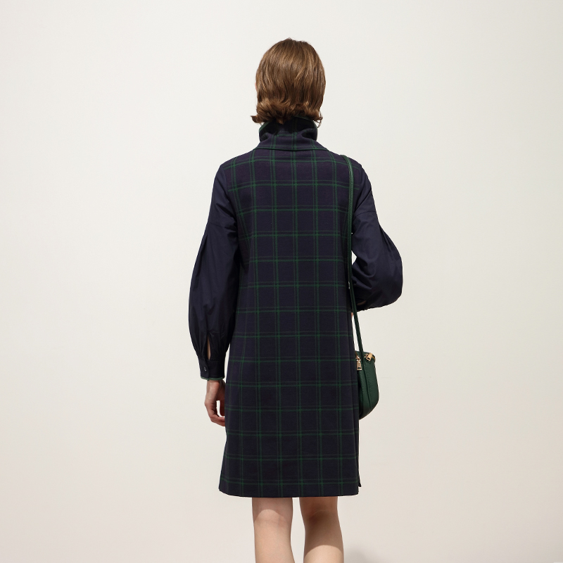木耳边领马甲显瘦胖MM磨毛厚A字长裙 冬装 大码 假两件套连衣裙新款