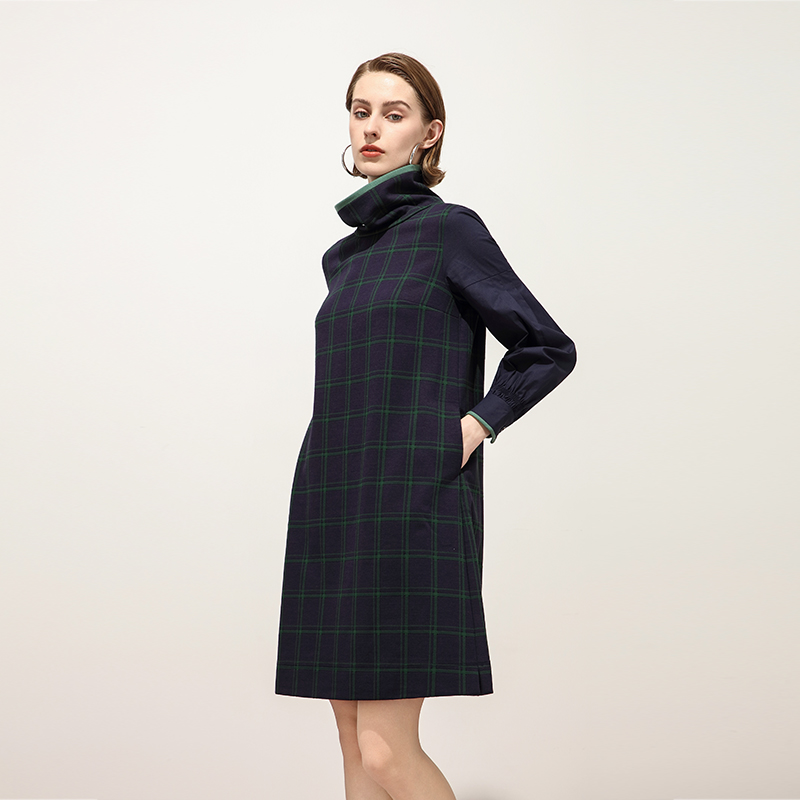 可可尼奥莱cocoon小香风连衣裙羊毛混纺海星扣修身 短裙秋款
