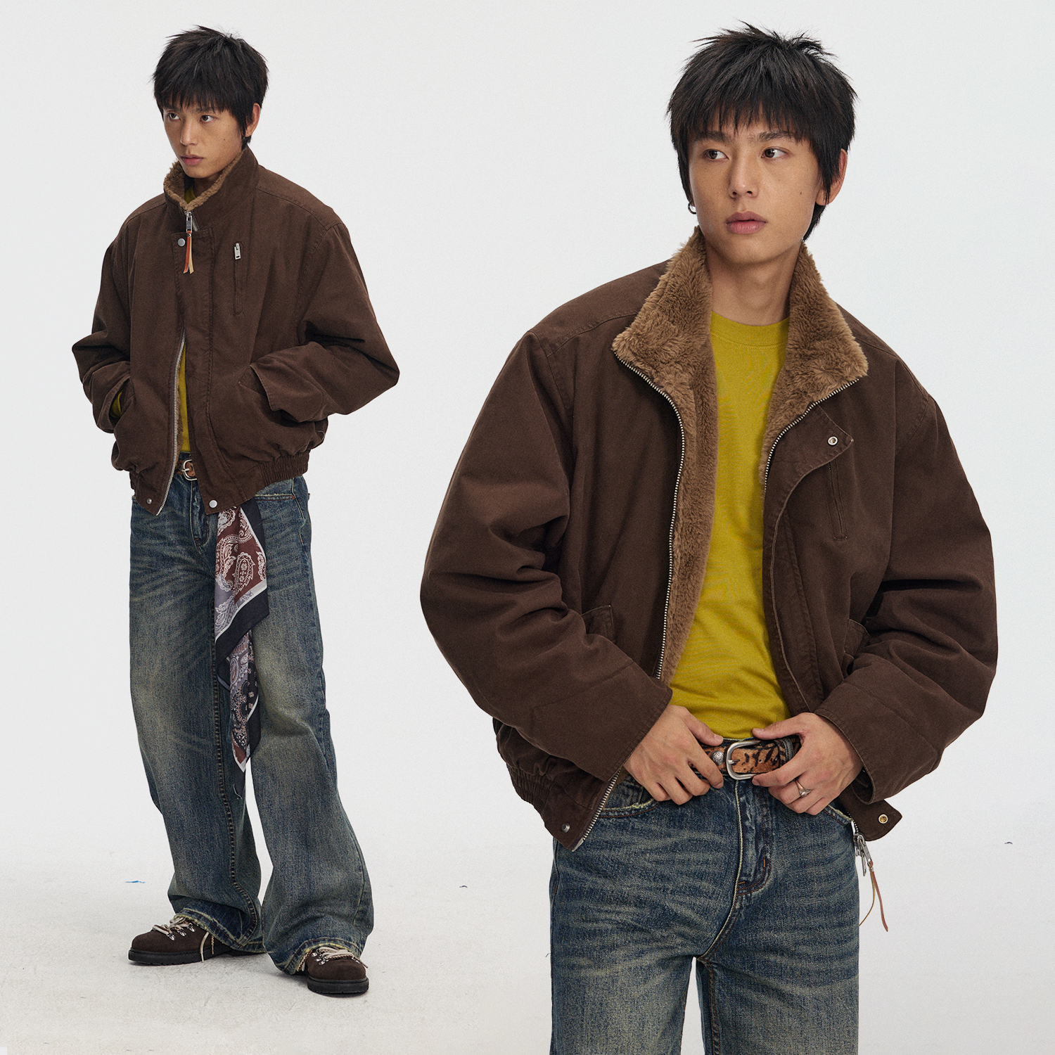 Lilbetter仿麂皮复古棕色哈灵顿夹克2025秋季 宽松立领老钱风外套