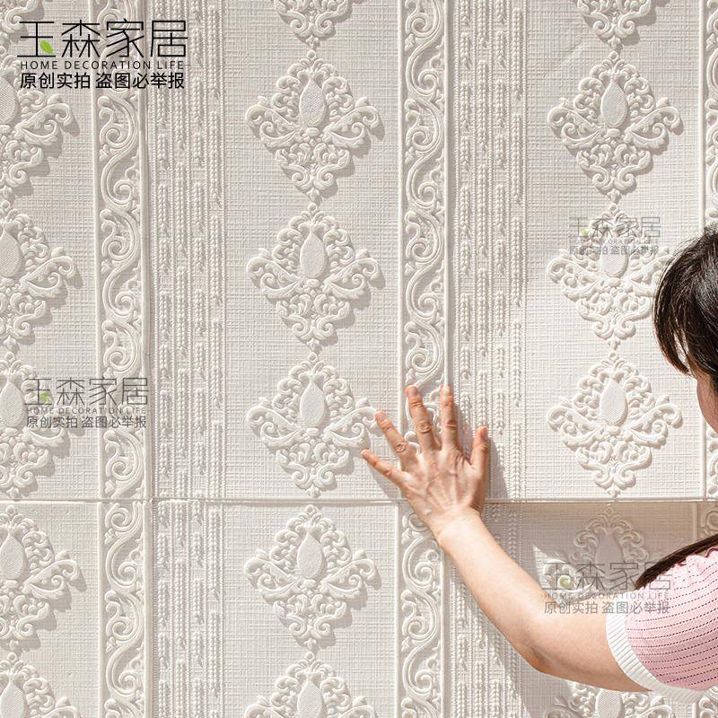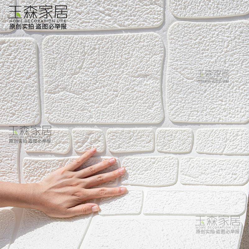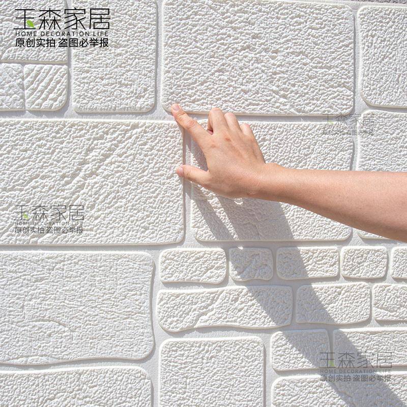 加厚白色砖纹3d立体墙贴自粘防水防潮卧室背景墙面装 饰防撞墙壁纸