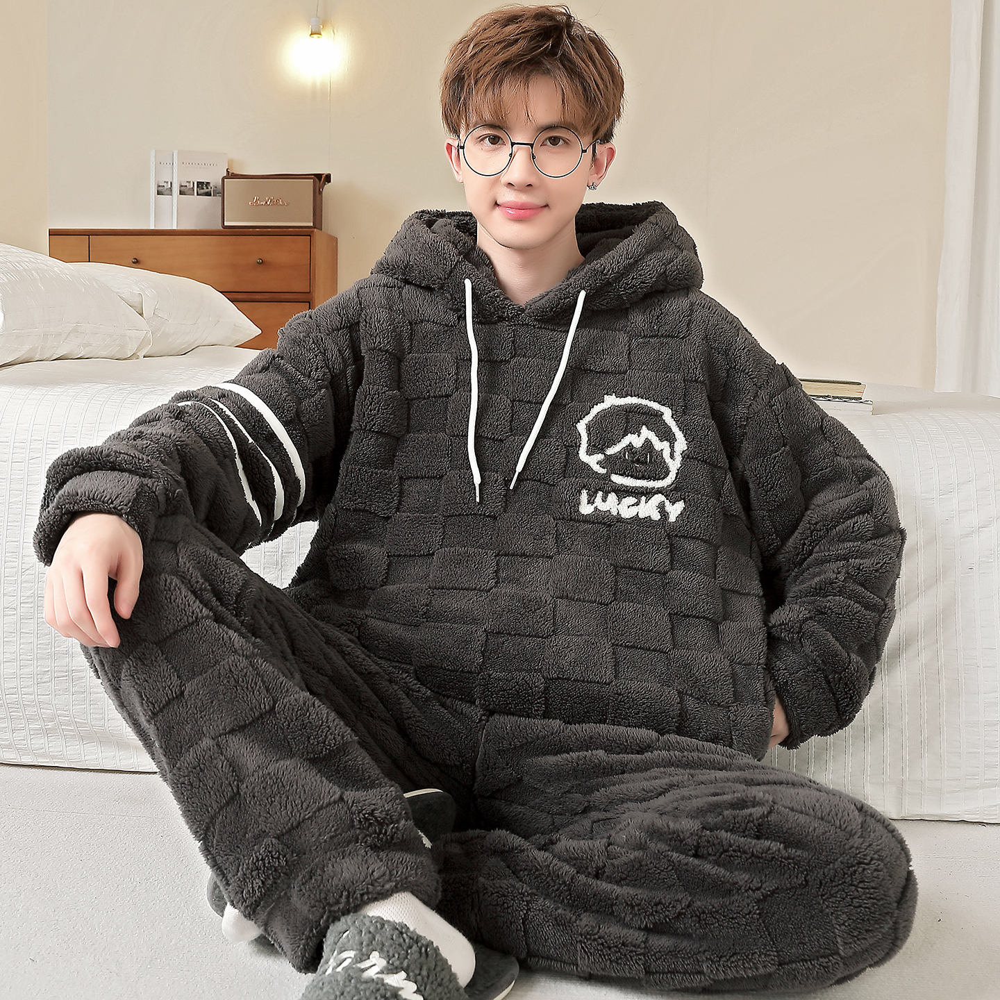 居服套装 珊瑚绒加厚加绒青少年学生保暖法兰绒男款 秋冬季 睡衣男士