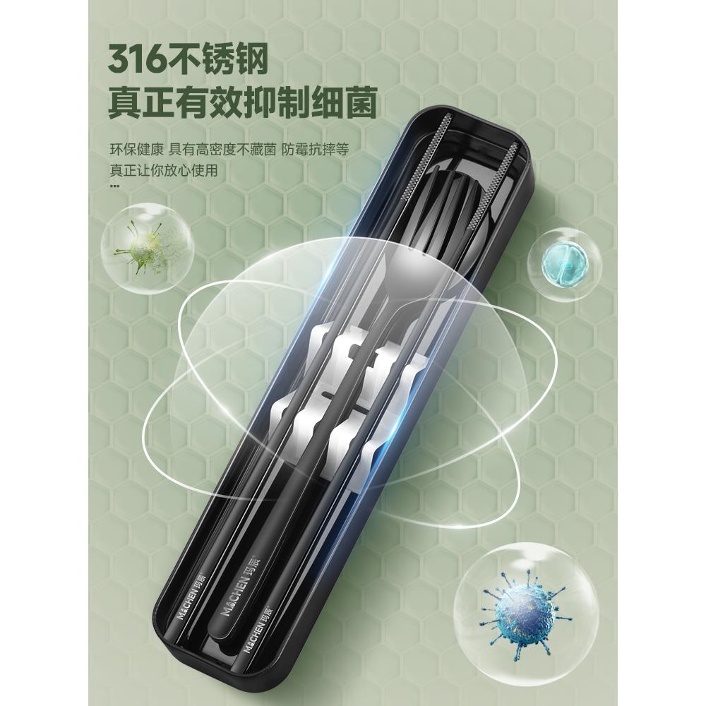 德国316L不锈钢筷子勺子套装 学生旅行收纳盒 便携餐具三件套单人装