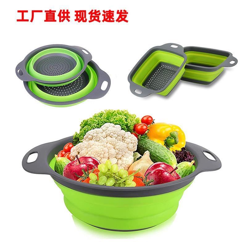 可折叠沥水篮方形洗菜篮厨房用品塑料蔬菜沥水盘多功能可伸缩滤水