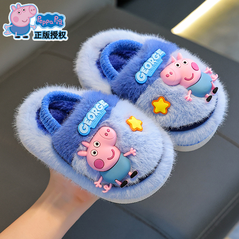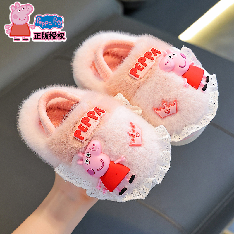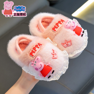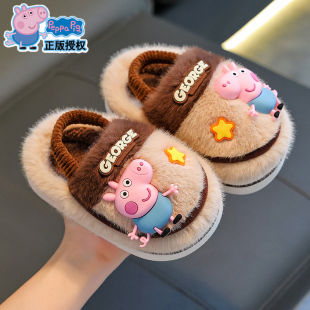2025佩奇儿童棉拖鞋 卡通可爱防滑室内软底中小童宝宝棉拖 女童冬季