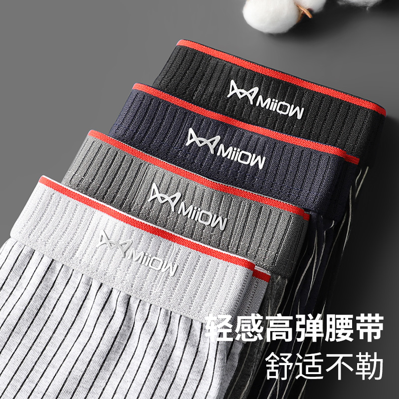 无痕纯棉抗菌透气平角运动大码 莫代尔男生四角裤 内裤 猫人男士