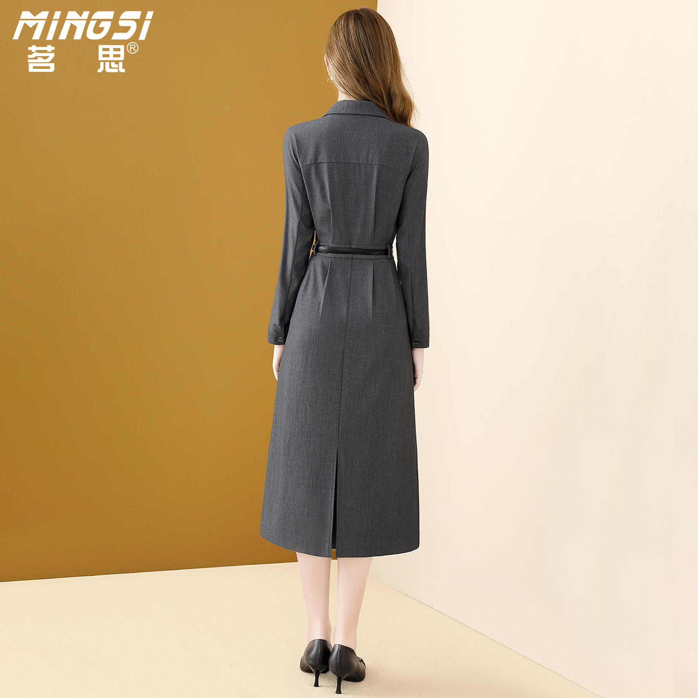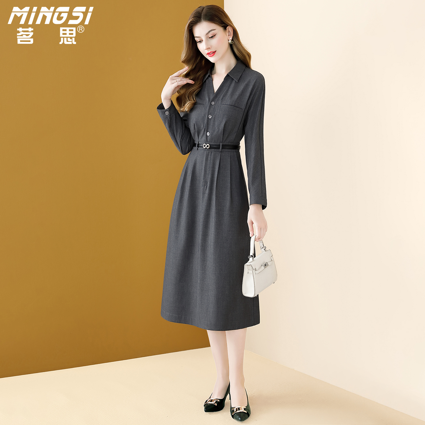 V领长袖 新款 收腰显瘦通勤裙子 连衣裙女2025秋季 茗思高级气质衬衫