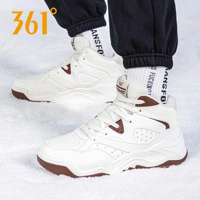 男鞋 子361度学生加厚运动男鞋 冬季 皮面防泼水鞋 新款 361加绒休闲鞋