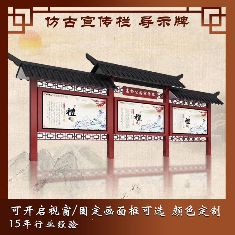 木纹理宣传栏公告栏不锈钢仿古广告牌景区指示橱窗户外烤漆阅报栏