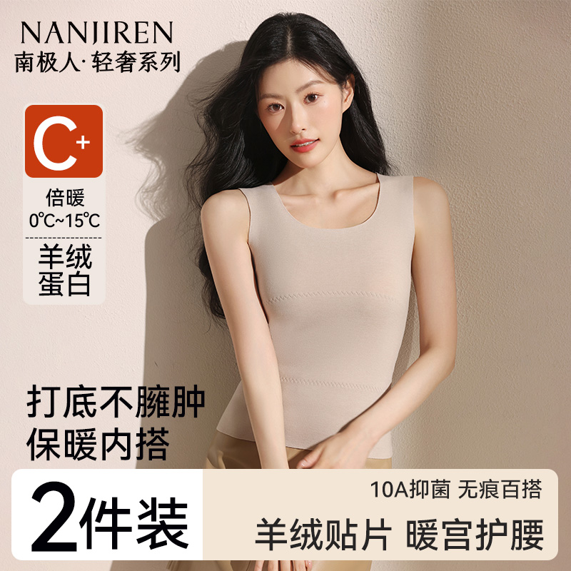 南极人德绒发热内衣无痕保暖背心女士加绒打底上衣带胸垫冬季 内搭