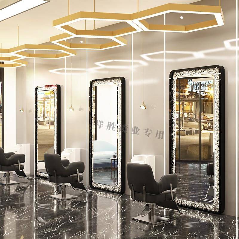 剪发烫染 led单面镜潮款 新款 美发店镜台理发店镜子发廊专用壁挂式