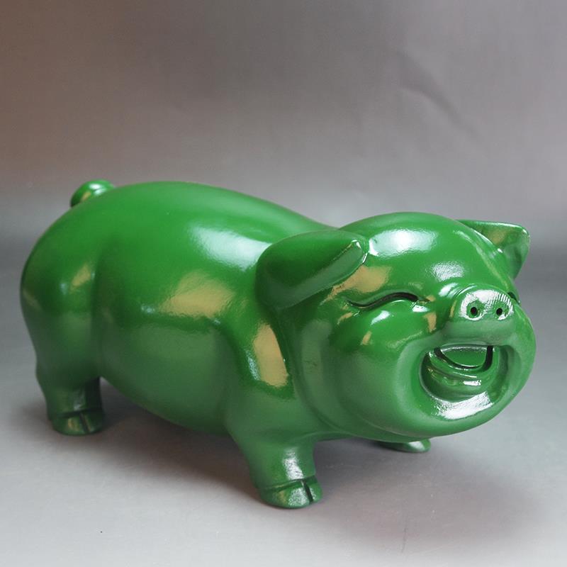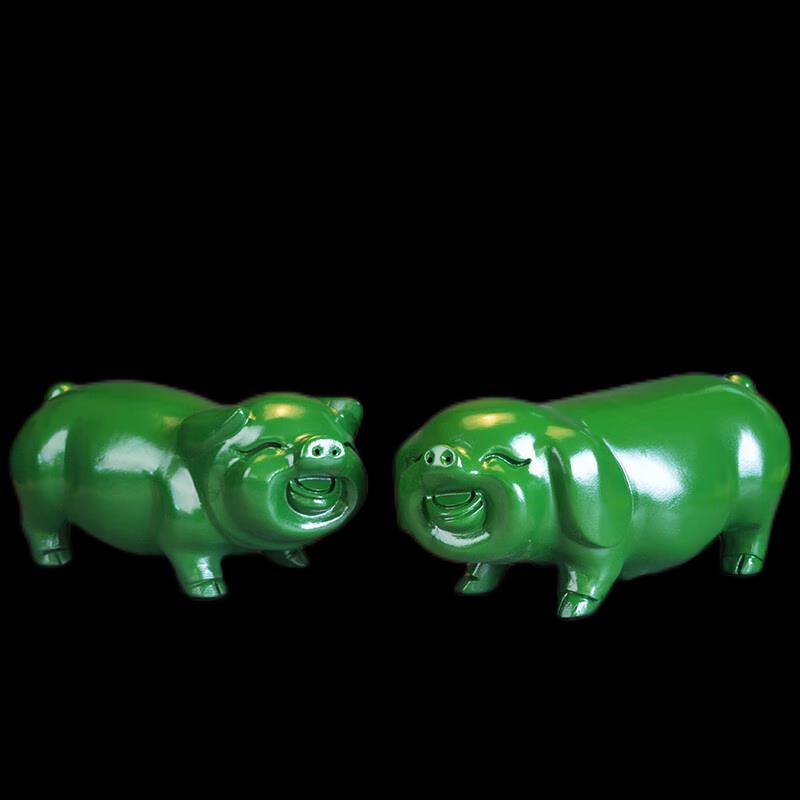 绿色木雕猪黑檀摆件实木十二生肖猪动物猪家居办公桌面装 饰工艺品