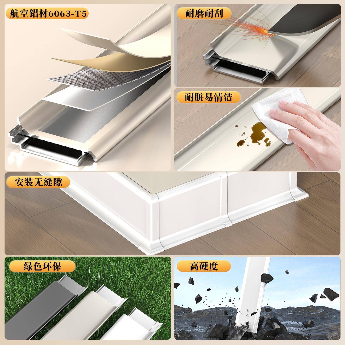 铝合金踢脚线6cm8cm极窄奶油风卡扣式 贴脚线金属弧形加厚地脚线