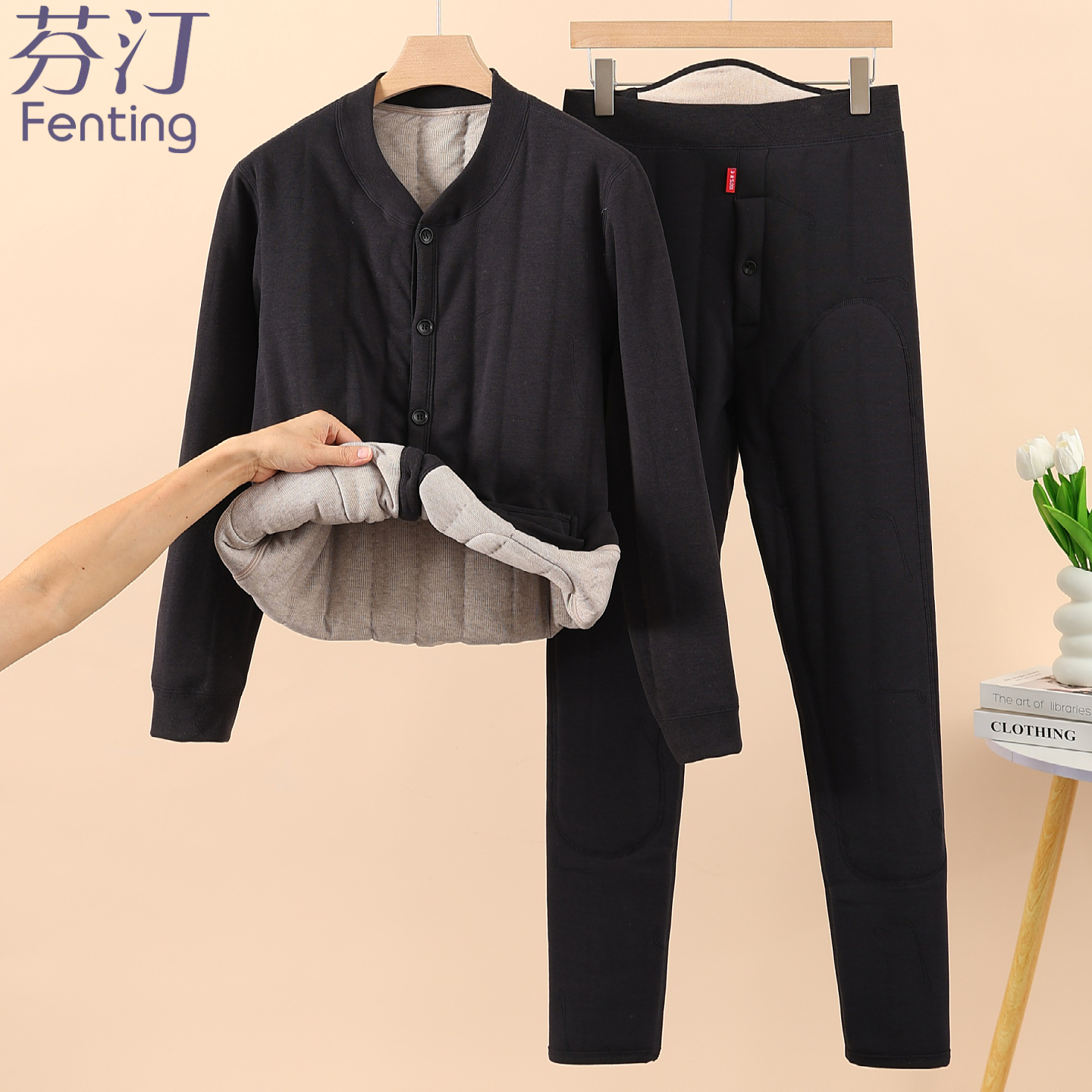 冬贴身家居服 女套装 东北羊毛保暖内衣老年人男款 加绒加厚秋衣秋裤