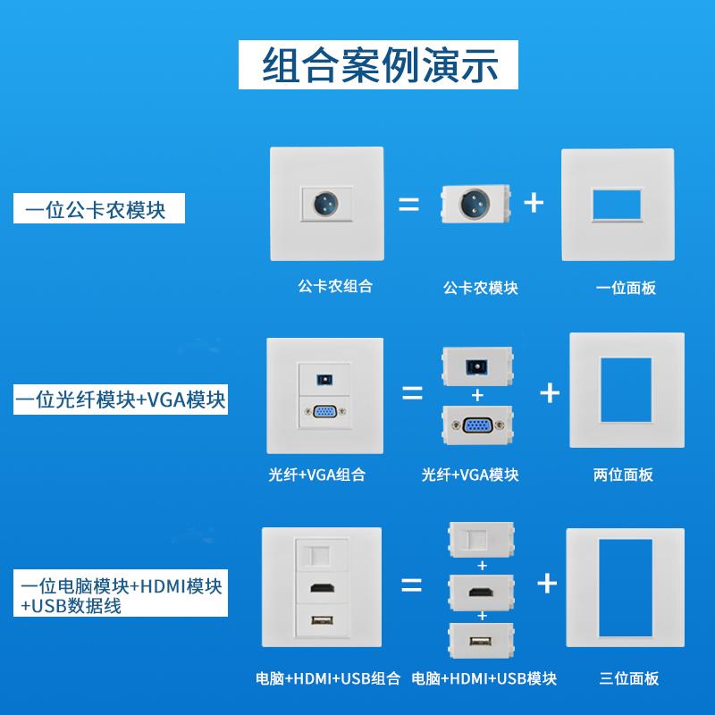 网线网络电话CAT6音频音响HDMI卡侬视频光纤话筒监控地插模块面板