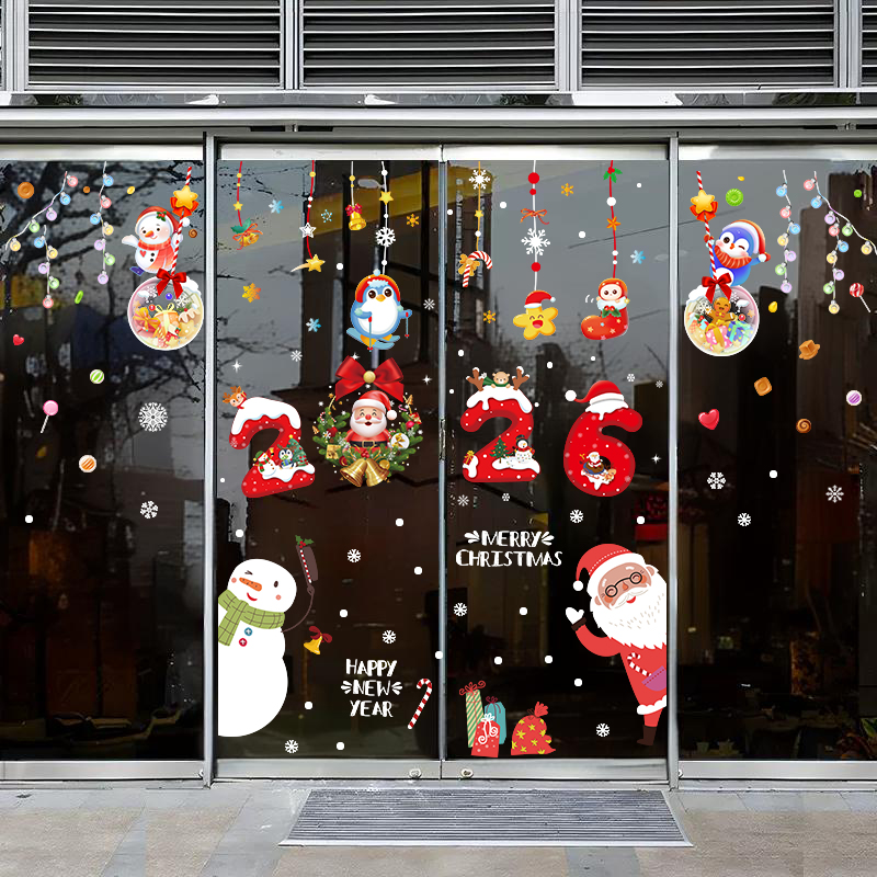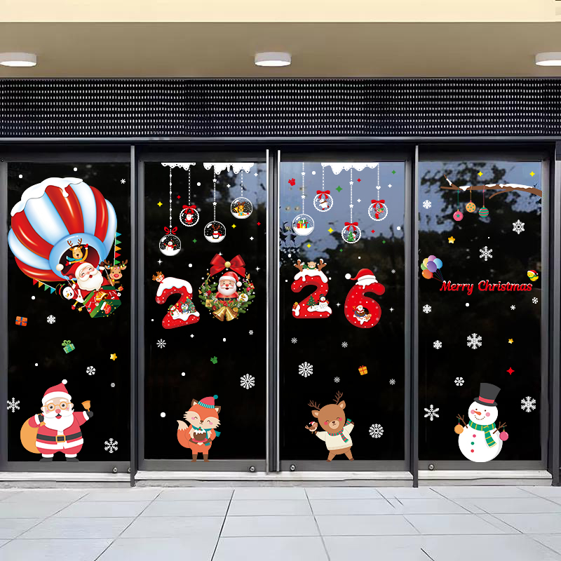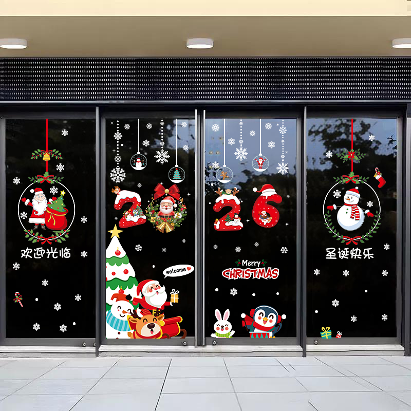 圣诞节装 饰场景布置拍照 饰品场景布置墙贴橱窗贴纸新年贴画窗花装