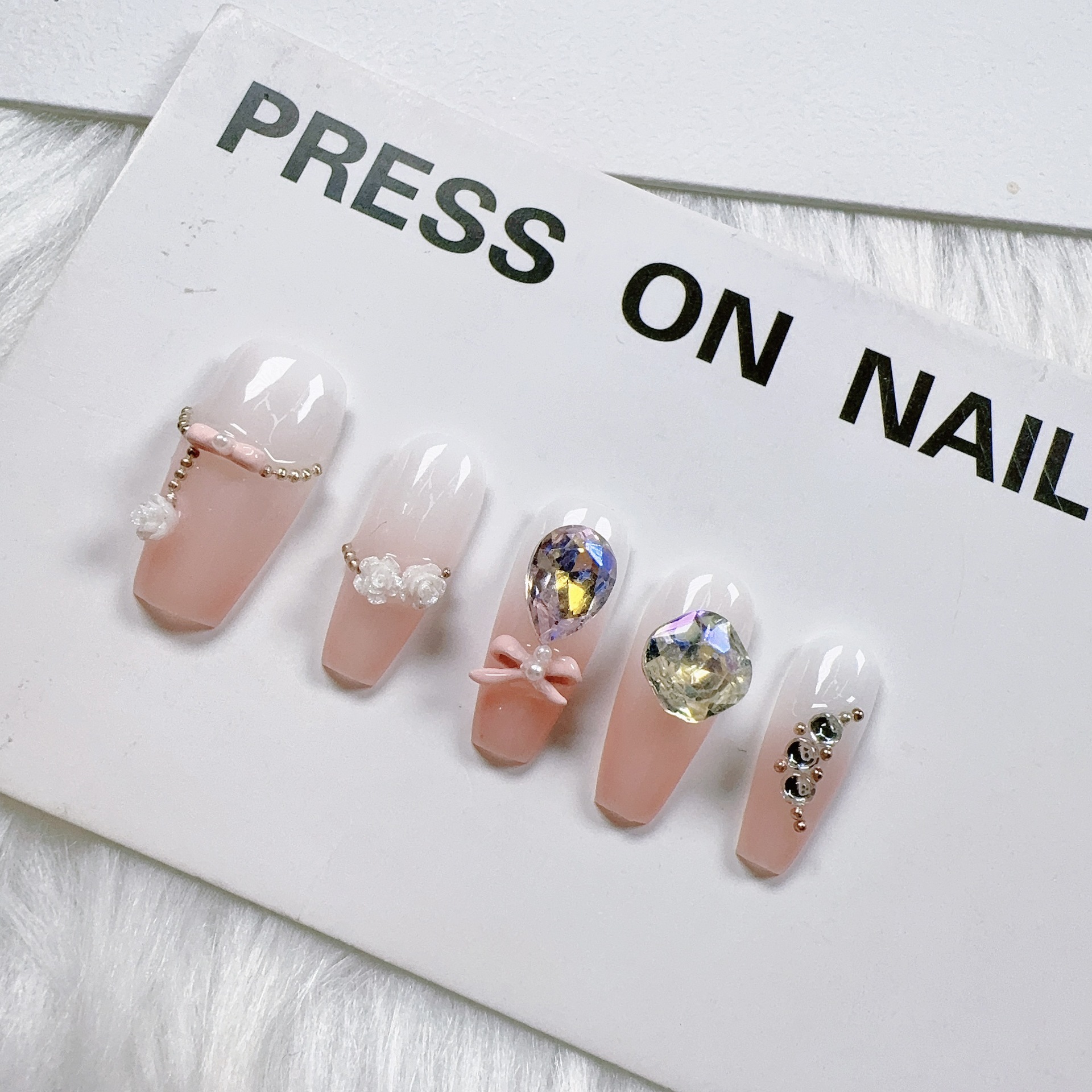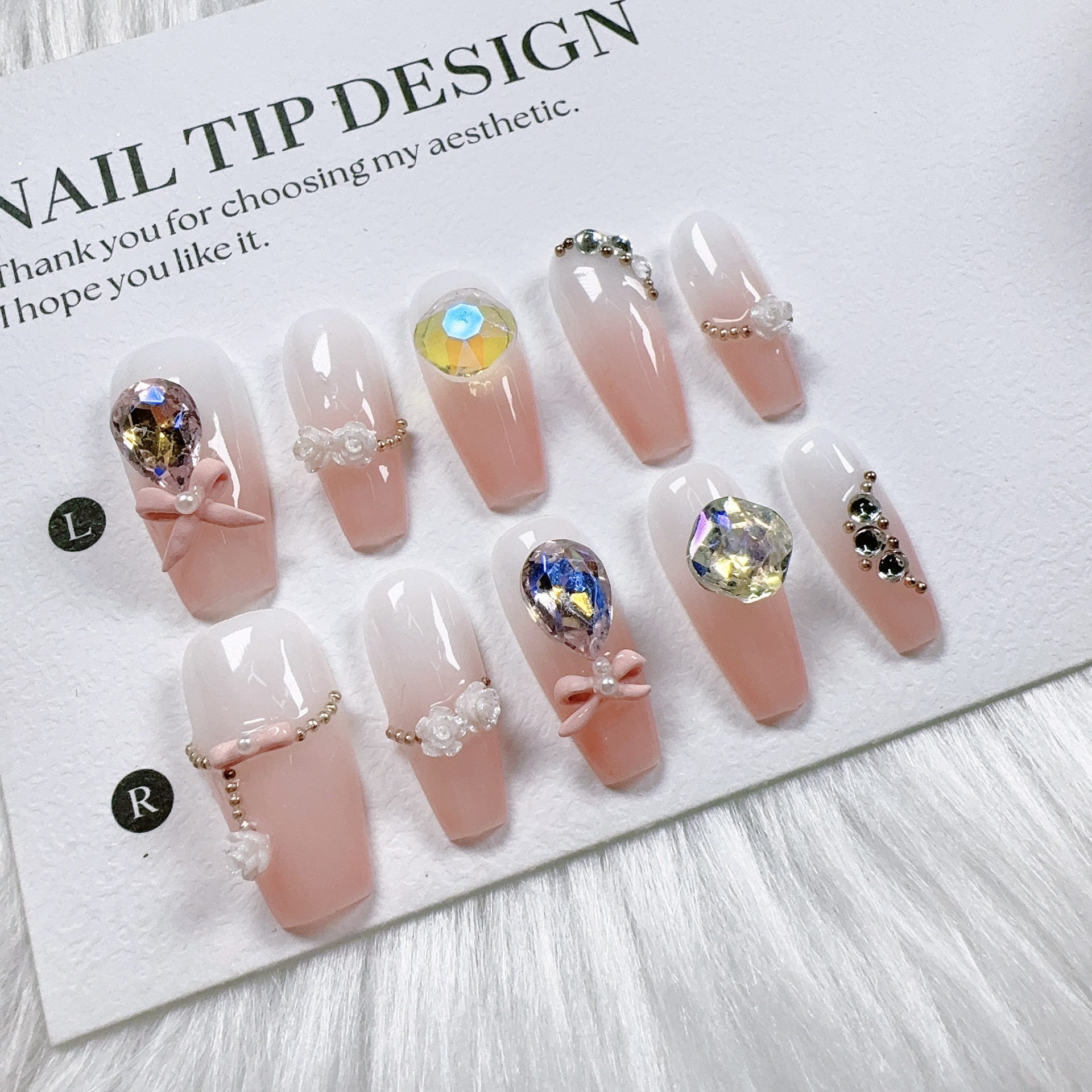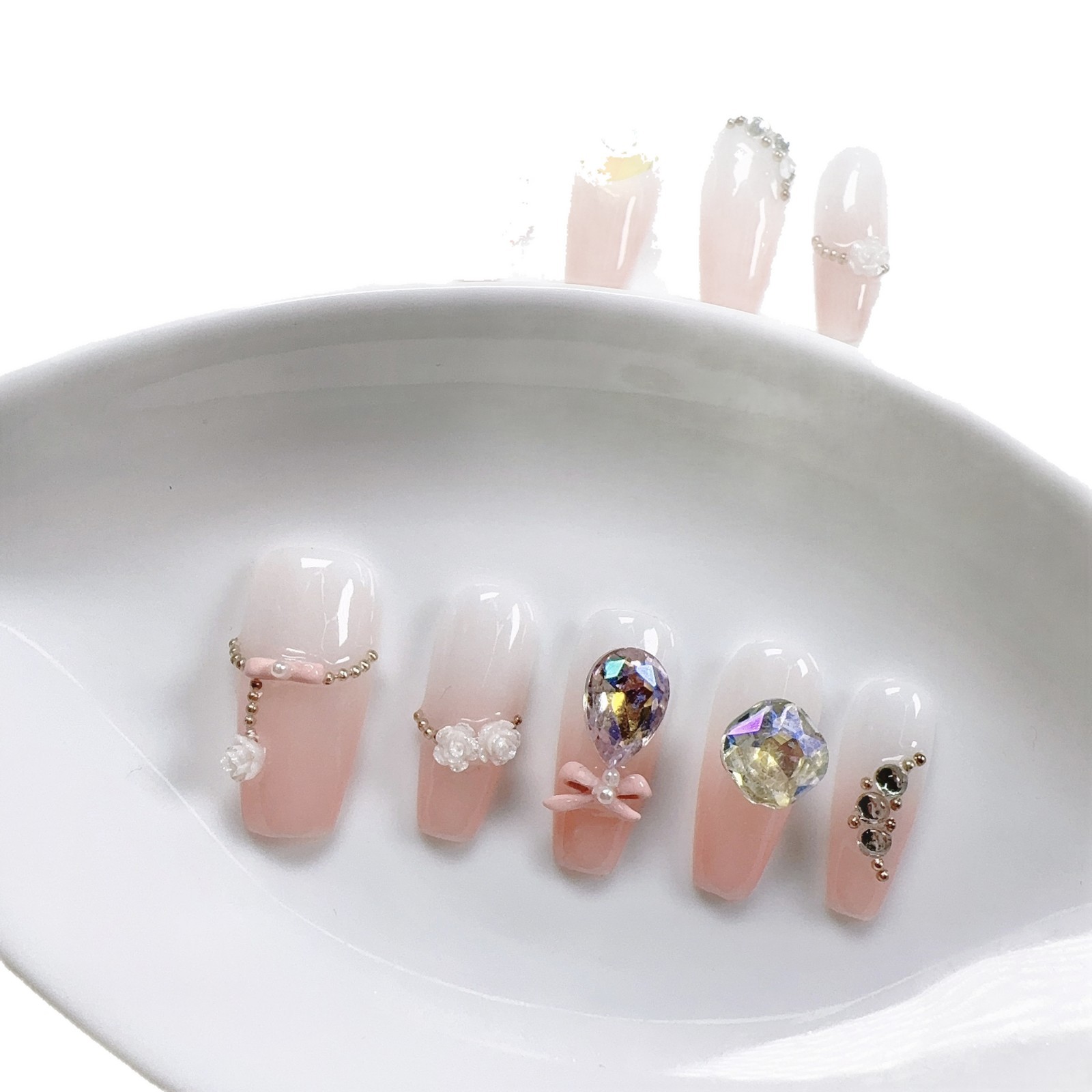 美甲穿戴甲蝴蝶结学生小孩中长款 成品美甲贴片可拆卸重复使用甲片