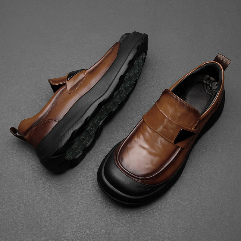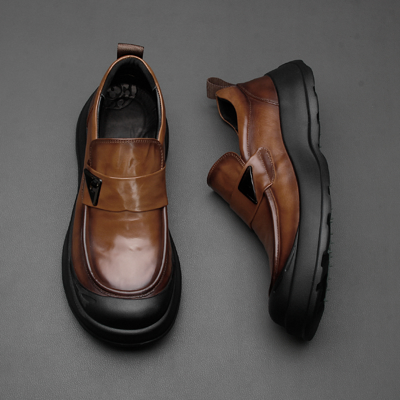男款 通勤马丁靴厚底增高休闲皮鞋 圆头大头鞋 鞋 黑色工装 MRA德比鞋