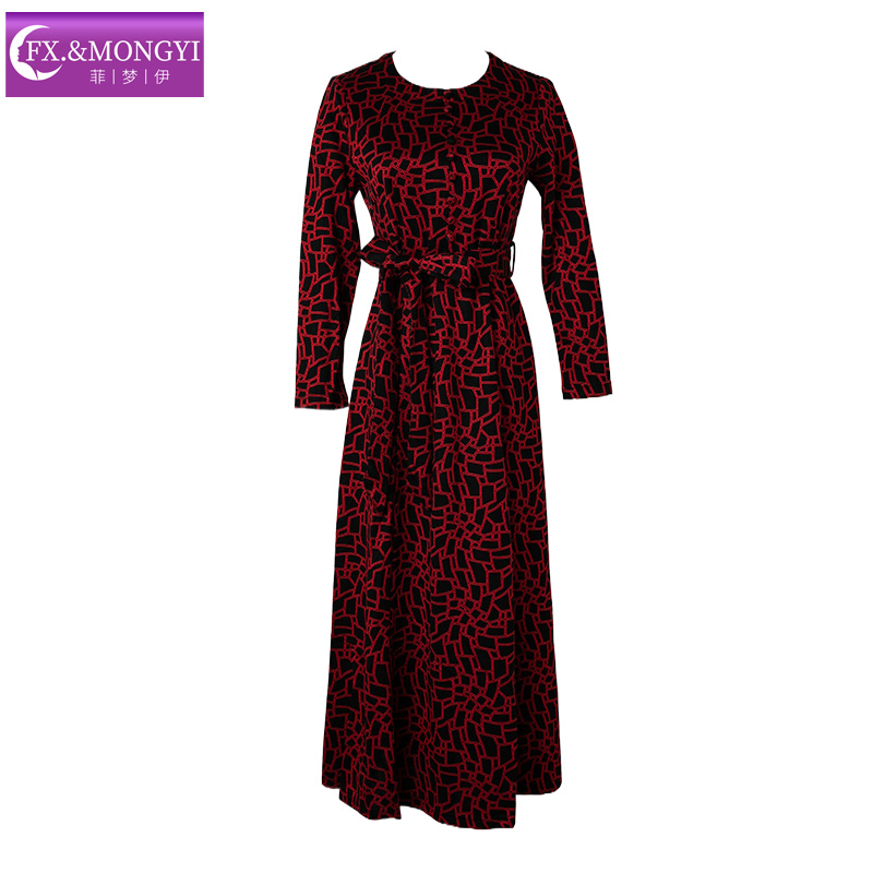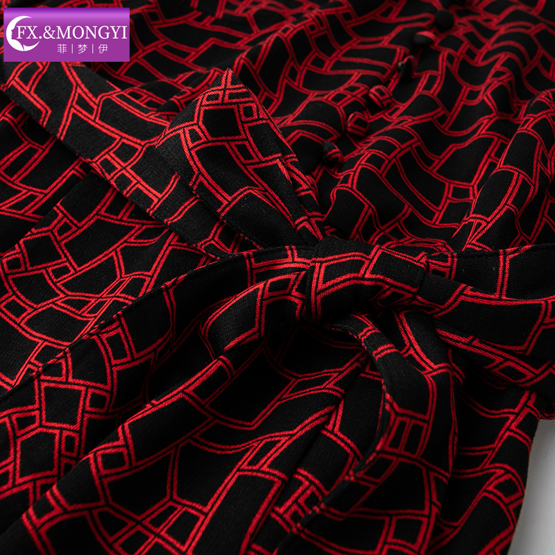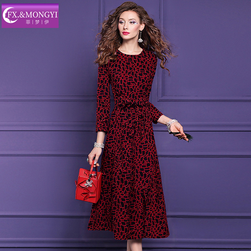 高贵洋气阔太太收腰A字裙子 法式 菲梦伊钉珠红色连衣裙女秋装 新款