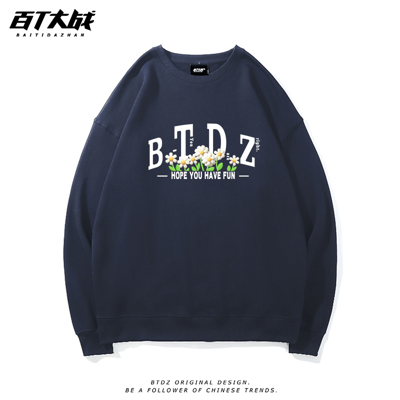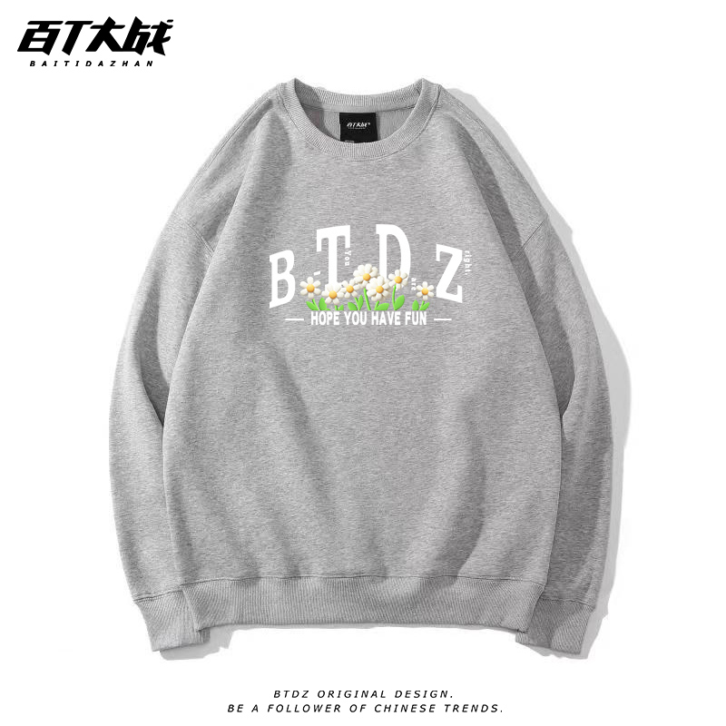 美式 宽松圆领卫衣 潮牌复古潮流简约字母文字花朵青少年重磅长袖