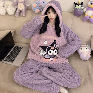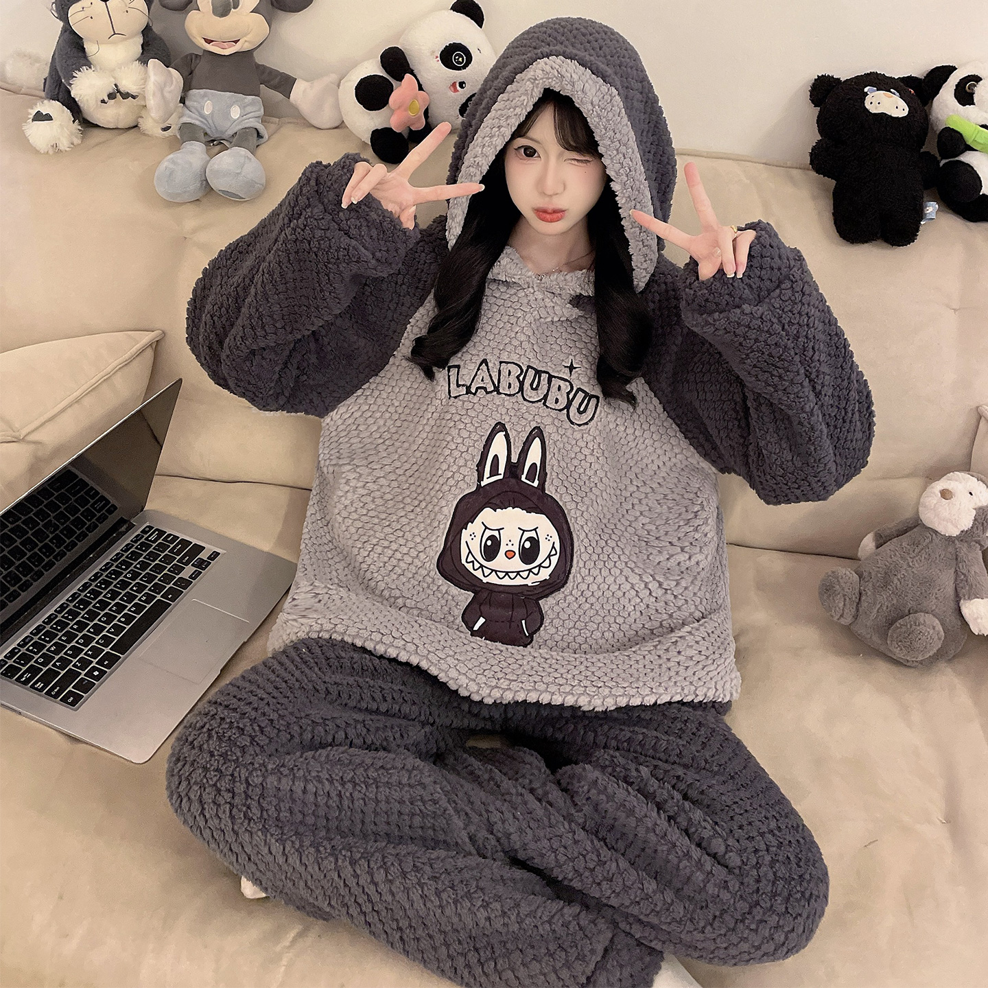 大鼻子狗可爱女士家居服套装 珊瑚绒保暖新款 果壳睡衣女冬季 Gukoo
