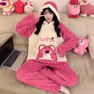 半边绒翻领保暖家居服套装 yso 新款 情侣睡衣女秋冬季 定金预售