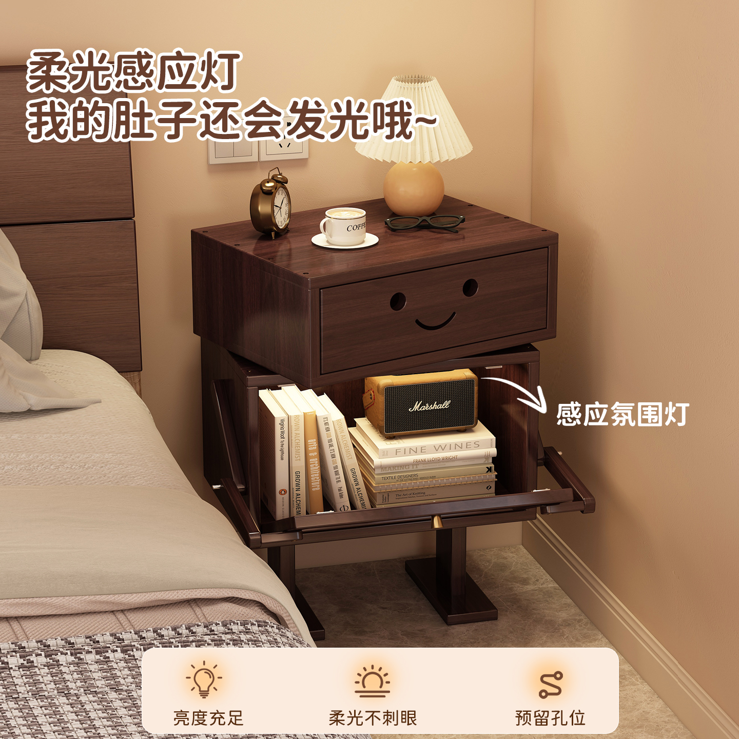 实木床头柜家用卧室小型带灯儿童创意床边置物架机器人边几收纳柜